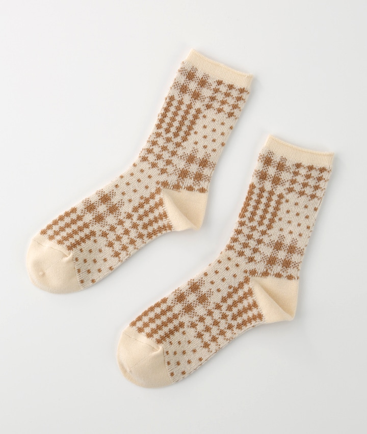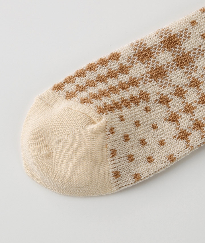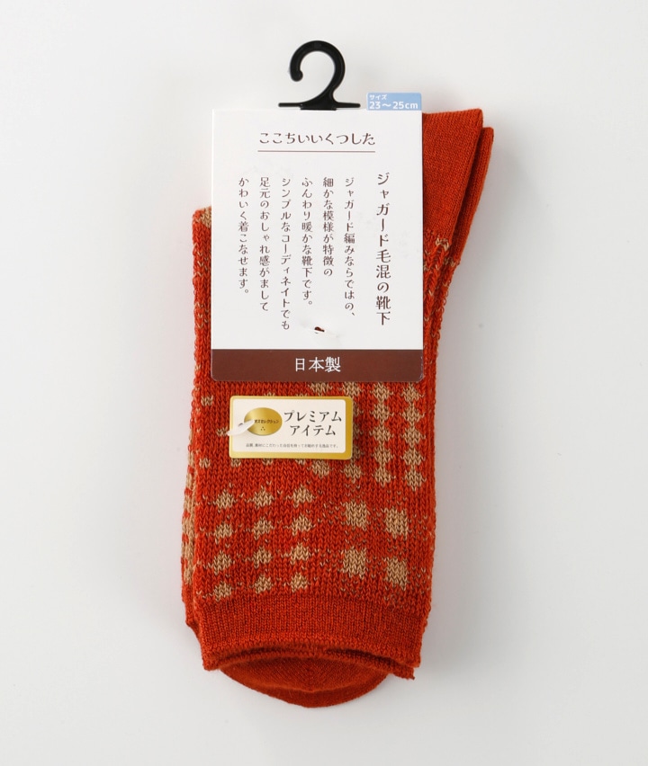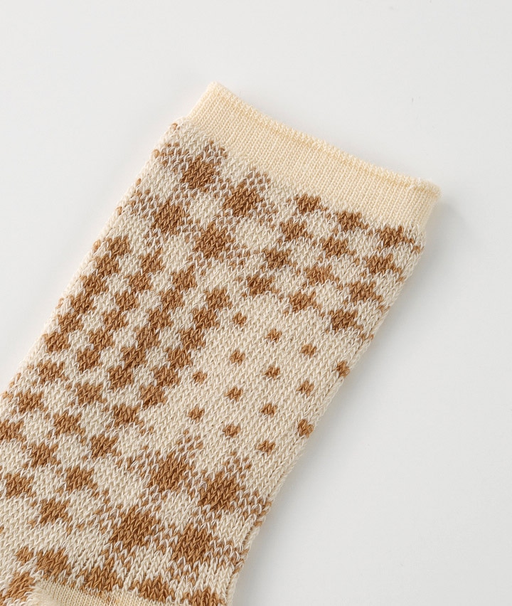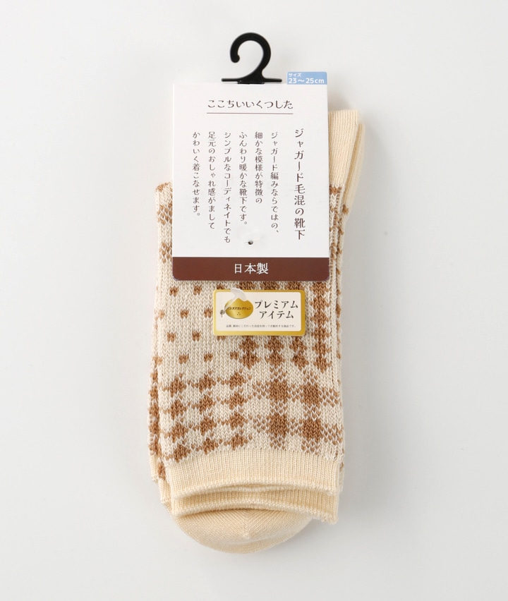 ・ジャガード編みならではの、細かな模様が特徴のふんわり暖かな靴下です。シンプルなコーディネートでも足元のおしゃれ感がまして、かわいく着こなせます。