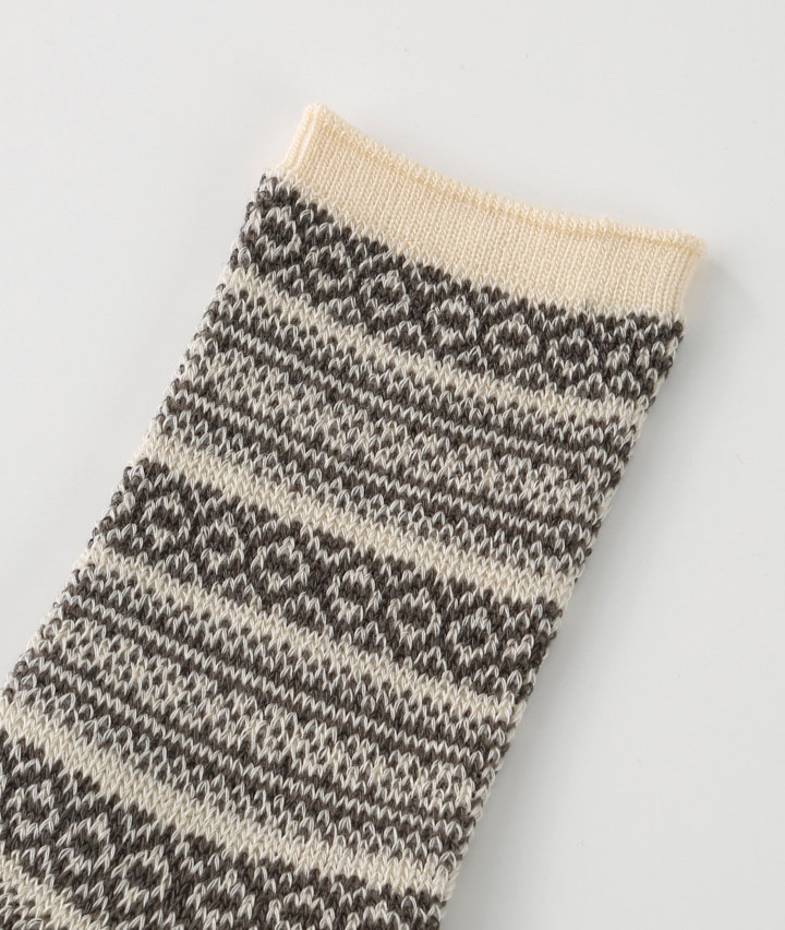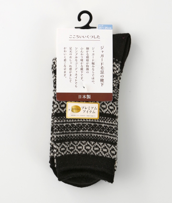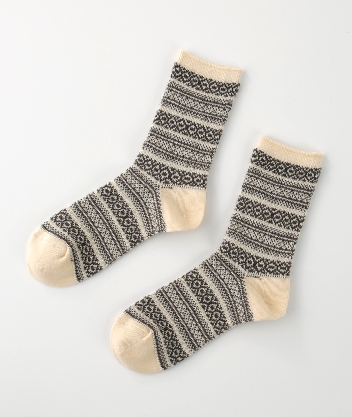 ・ジャガード編みならではの、細かな模様が特徴のふんわり暖かな靴下です。シンプルなコーディネートでも足元のおしゃれ感がましまして、かわいく着こなせます。