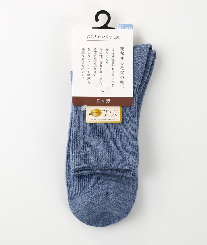 ・遠赤外線放射セラミックを練りこんだ、保温性に優れた靴下です。抗菌防臭加工なので気になるニオイを軽減し快適な履き心地です。