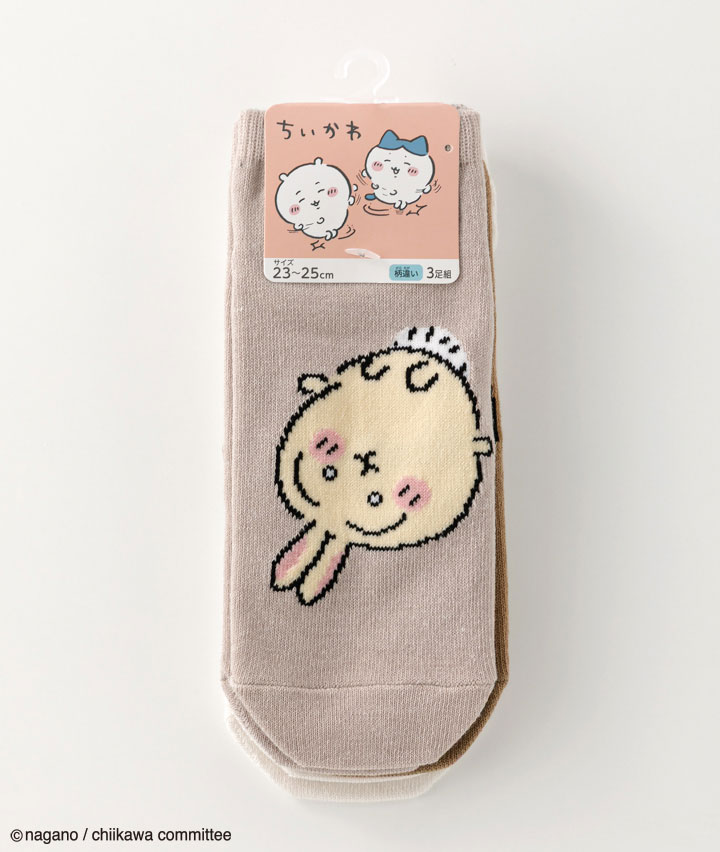 【ちいかわ】(3足組)(ハチワレ)(うさぎ)(くりまんじゅう)フロント柄ソックス
