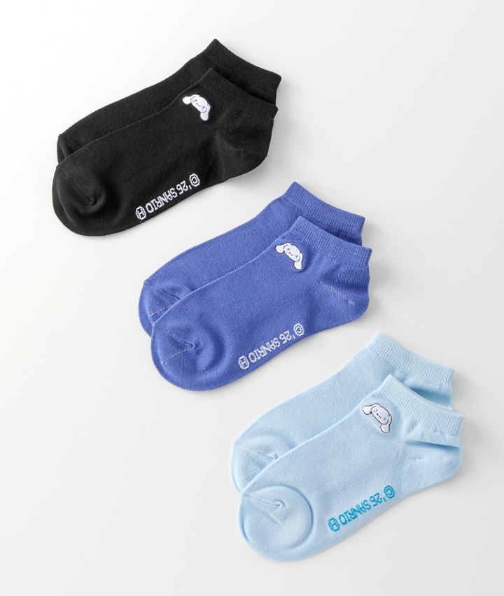 ・足元ひんやり 接触冷感 シナモロールの3足組スニーカーソックス