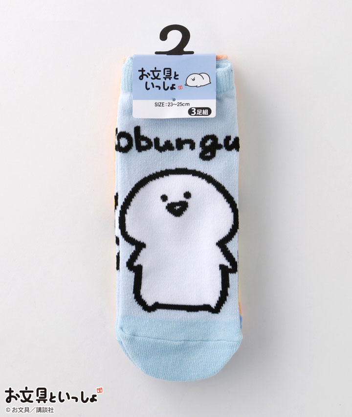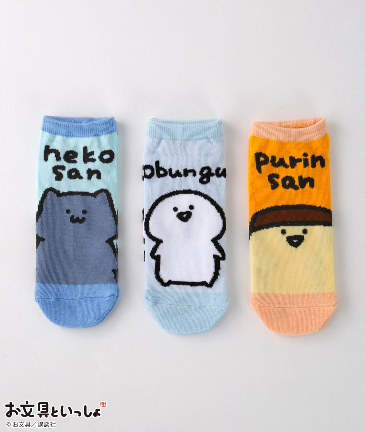 【お文具といっしょ】(3足組)フロント柄ソックス