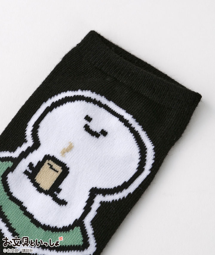 ・なんだか疲れたこころの中を、ほんのり満たしてくれるキャラクターシリーズ「お文具さん」のフロント柄ソックスです。
