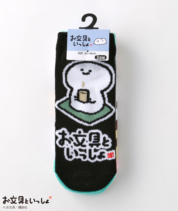 【お文具といっしょ】(3足組)フロント柄ソックス