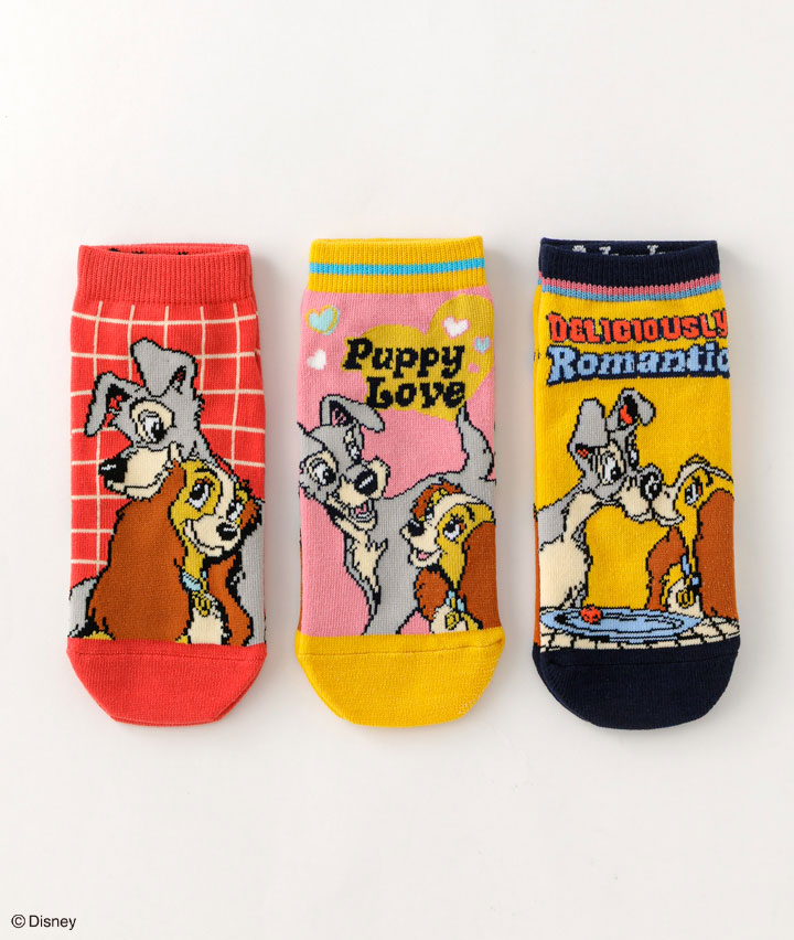 【Disney】(わんわん物語)(3足組)フロント柄ソックス
