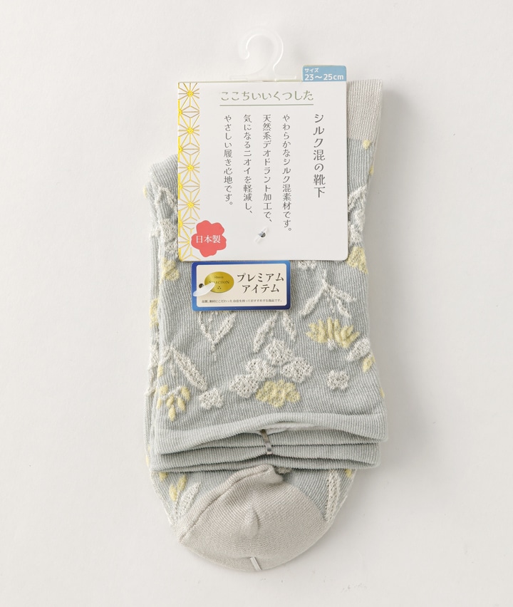 (日本製)(1足物)シルク混花柄クルーソックス