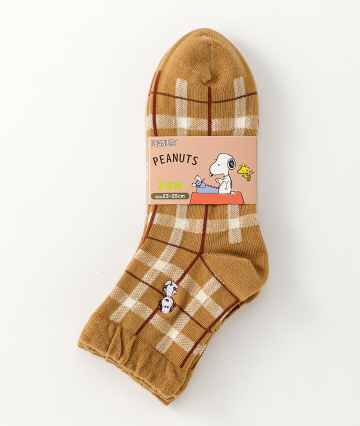 【PEANUTS】(スヌーピー)(2足組)刺繍付クルーソックス