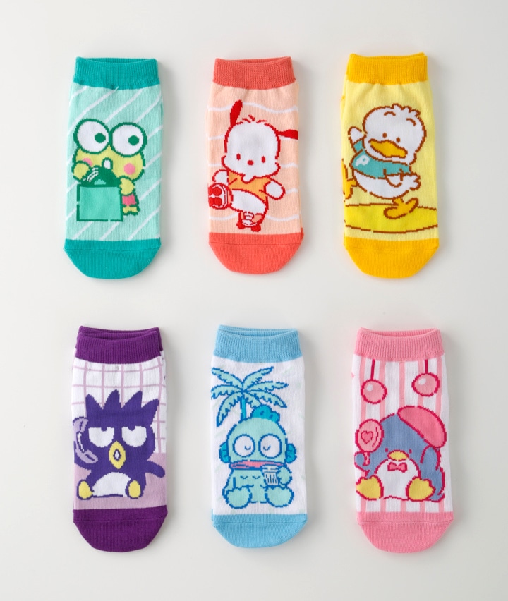 【サンリオキャラクターズ】(6足入り)巾着付きソックスパック