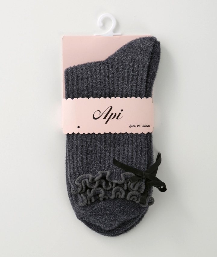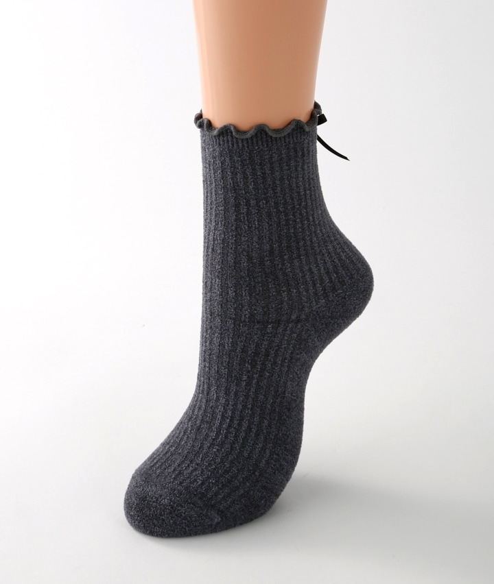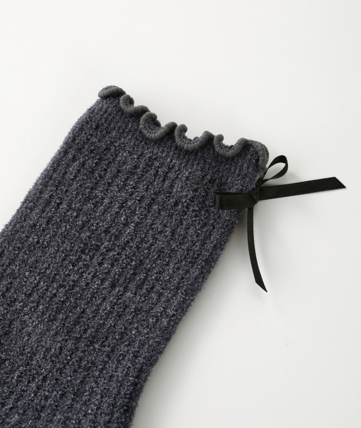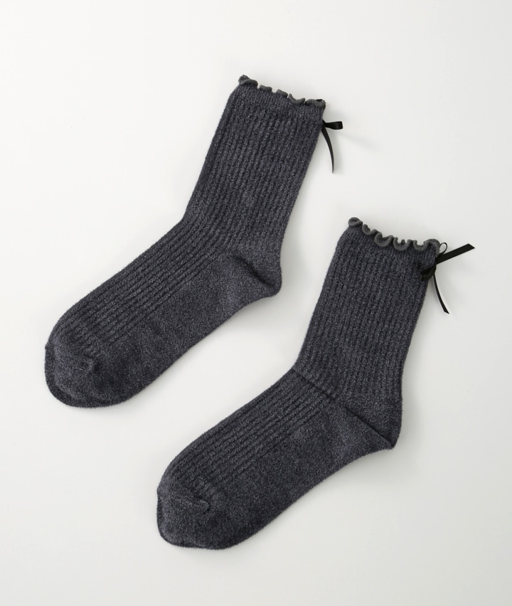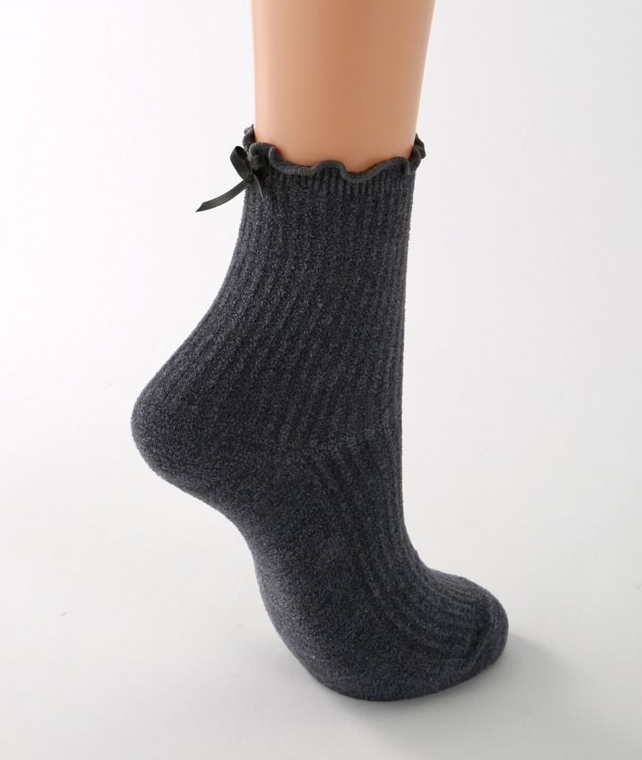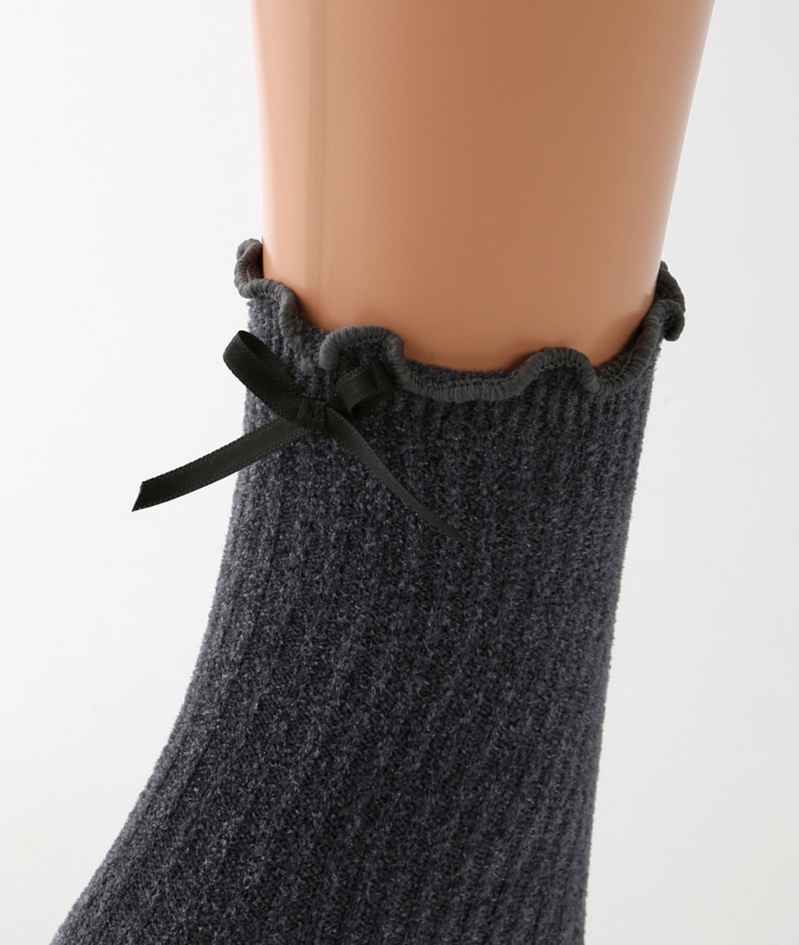 ・ベロア風素材ソックスにリボンが付いたキュートなソックスです♪