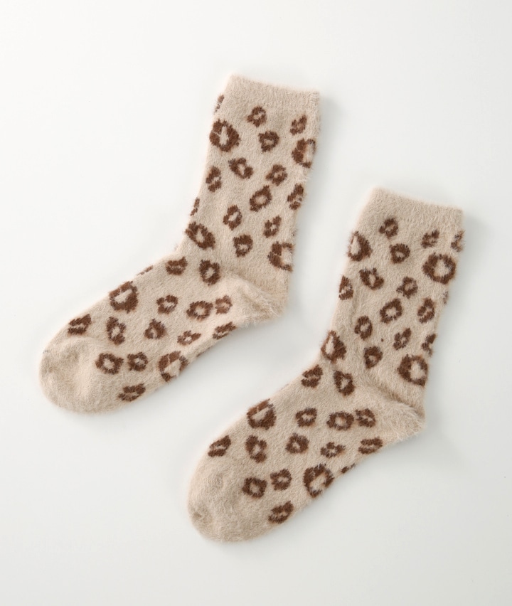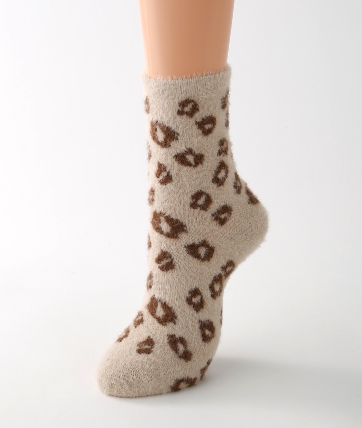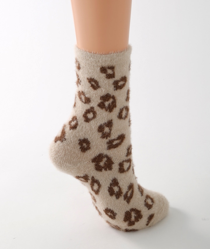 ・トレンドのヒョウ柄ソックスです。シャギー素材で冬でも足元あったか♪