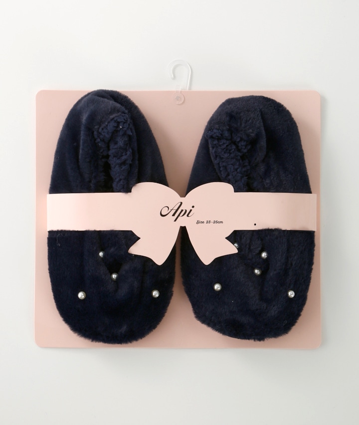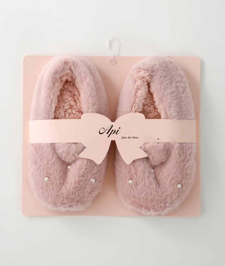 ・散りばめられたフェイクパールが大人かわいいルームシューズです♪