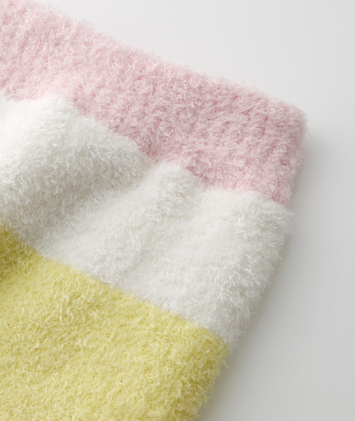・素材の特性上、汗や濡れた状態で摩擦により色落ちしたり色移りしたりすることがあります。濃色の場合は特にご注意ください。・色物は他の物と分けて洗ってください。・クリーニングネットを使用してください。・長時間濡れたまま放置しないでください。・漂白剤や蛍光増白剤を含んだ洗剤は使用しないでください。・形を整えて日陰で平干ししてください。・素材の特性上、着用や洗濯により毛羽立ちや毛玉が発生しやすい商品です。強い摩擦やもみ洗いなどはお避けください。・柔らかい風合いを保つため、糸が抜けやすくなっています。強く引っ張らないように注意してください。