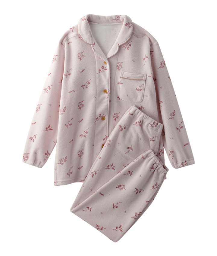 【SUFFUSE】温活裏起毛ミモザ柄シャツパジャマ