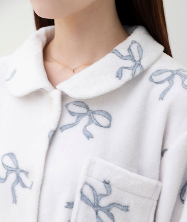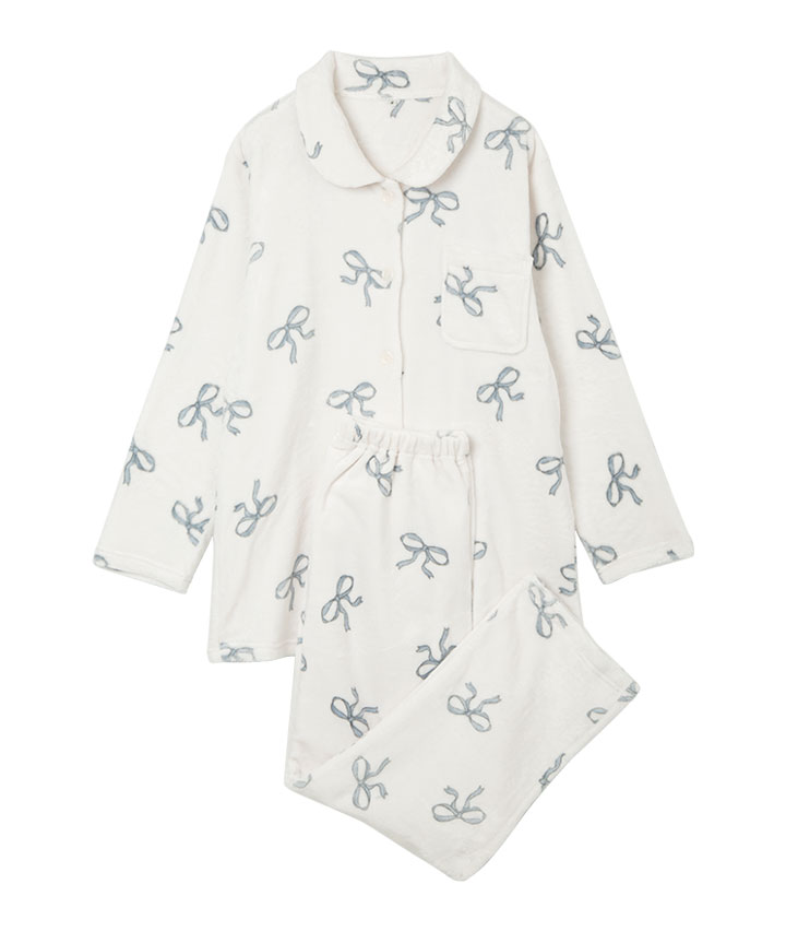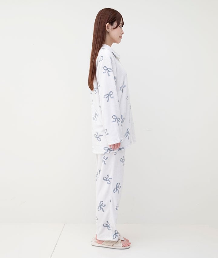 【SUFFUSE】【ふわもこ】リボン柄シャツパジャマ
