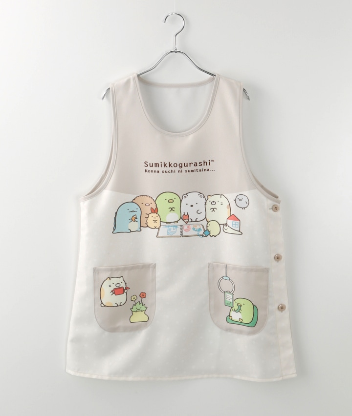 ・人気キャラクターすみっコぐらしの脇釦タイプのエプロンです。