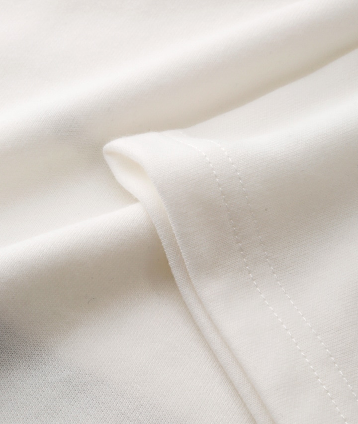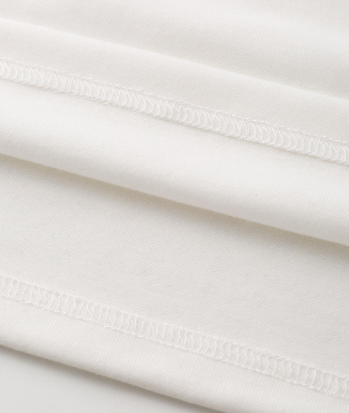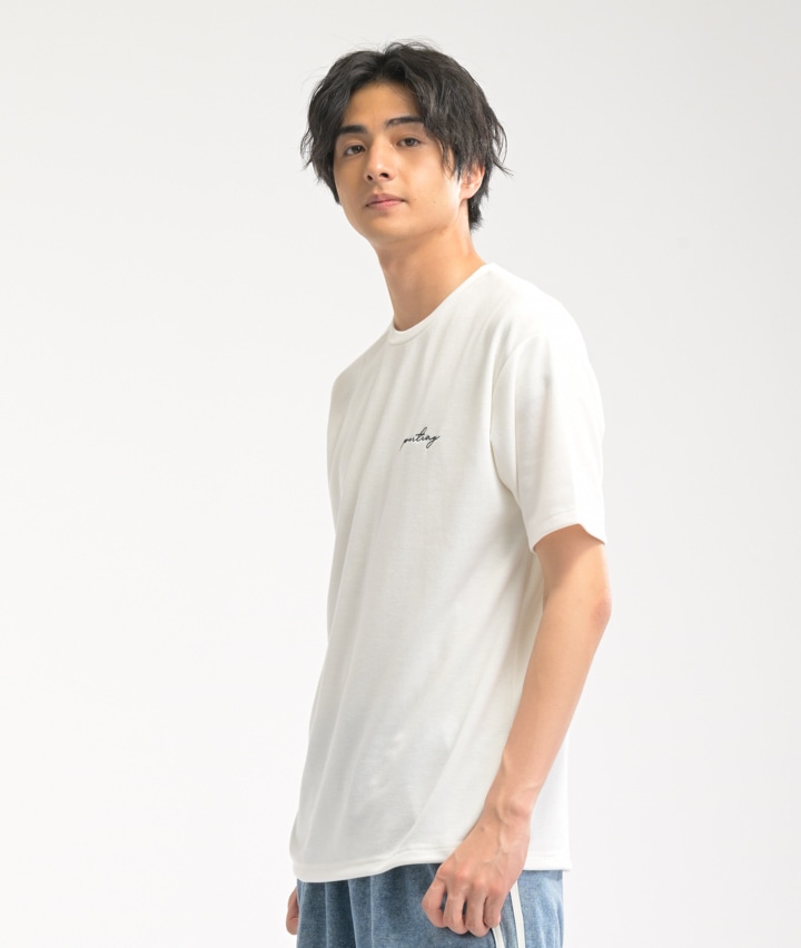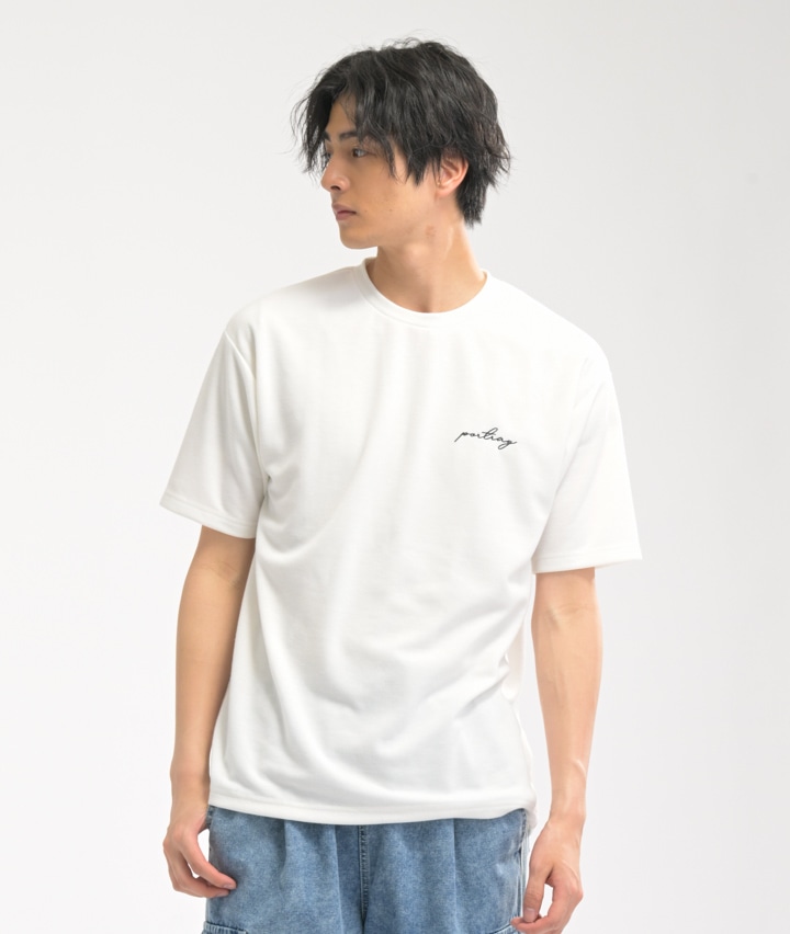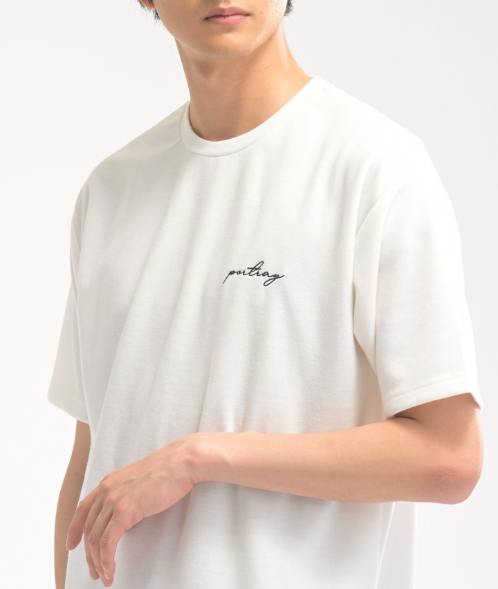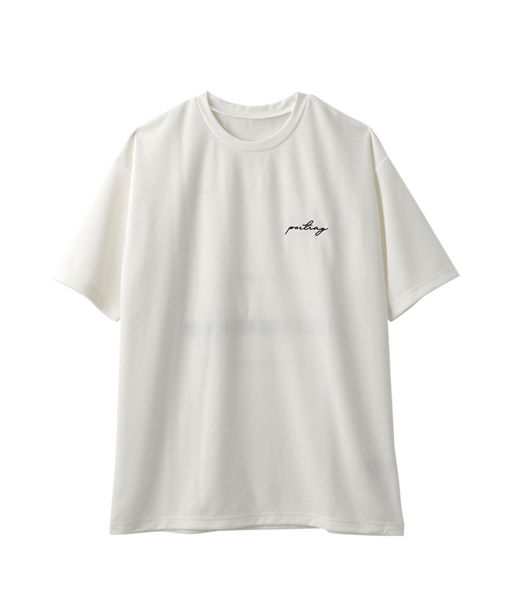 ・薄手のポンチ素材なので非常に滑らかな素材。バックプリントロゴが癖が無くコーディネートの邪魔にならないさりげないデザイン。一枚で夏の着こなしの気分を上げてくれます。