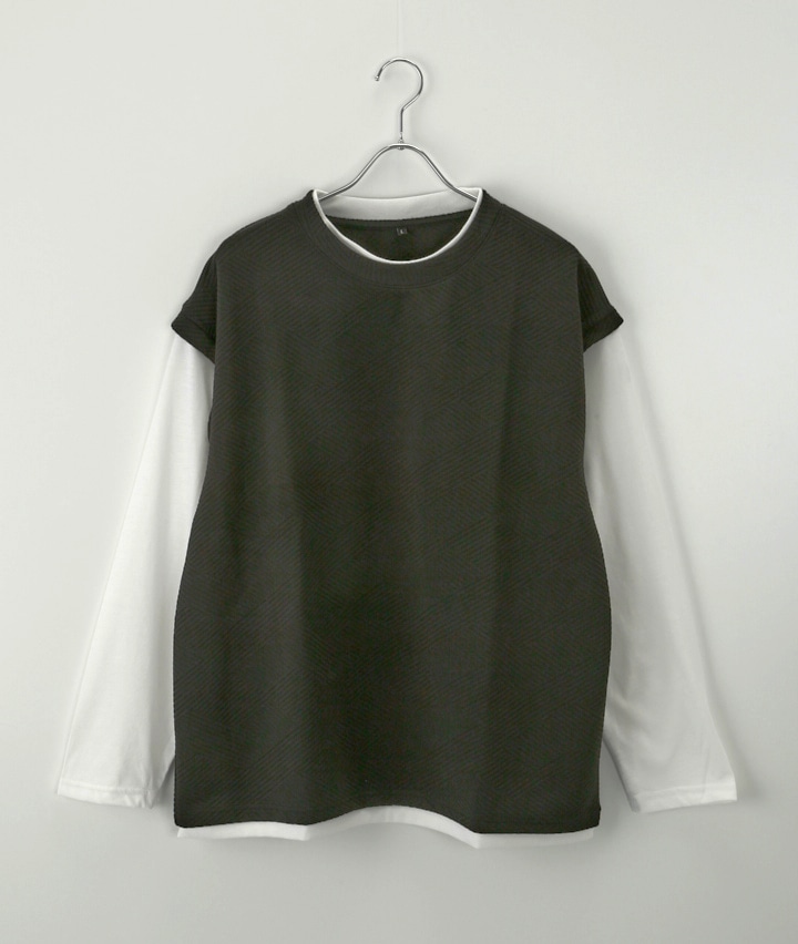 ふくれジャカードベストフェイクレイヤードTシャツ