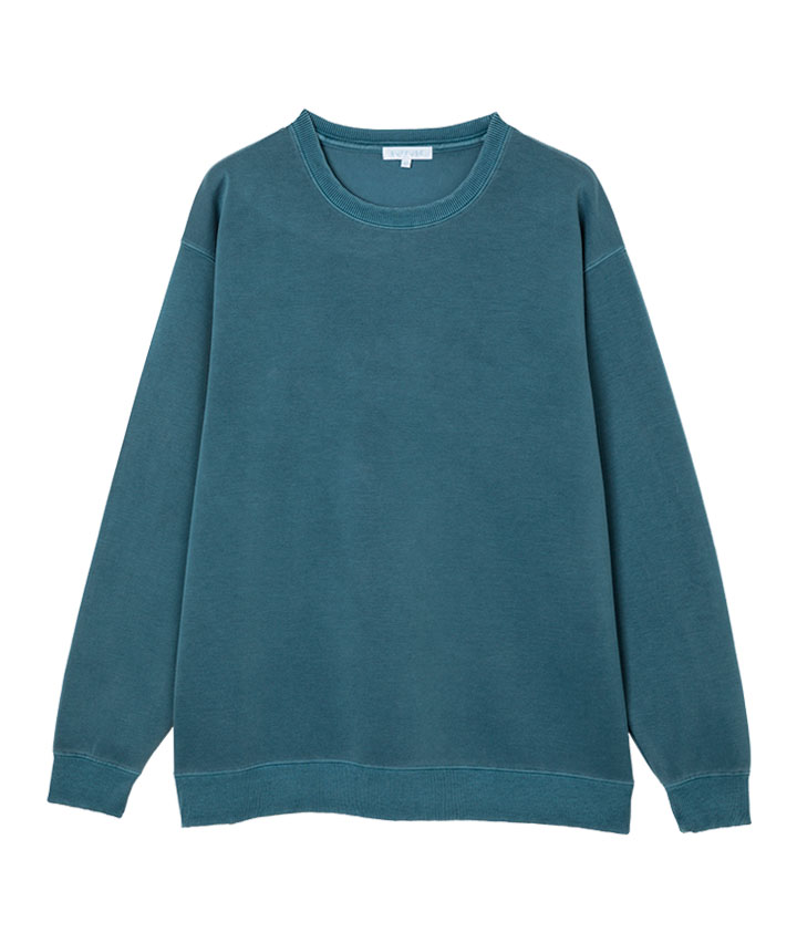 ・ピグメント加工をしたダンボールニットトレーナーです。古着っぽい雰囲気とダンボールニットの着心地の良さを併せ持っています。ゆとりのあるワイドシルエットで旬なコーディネートを作り出します。