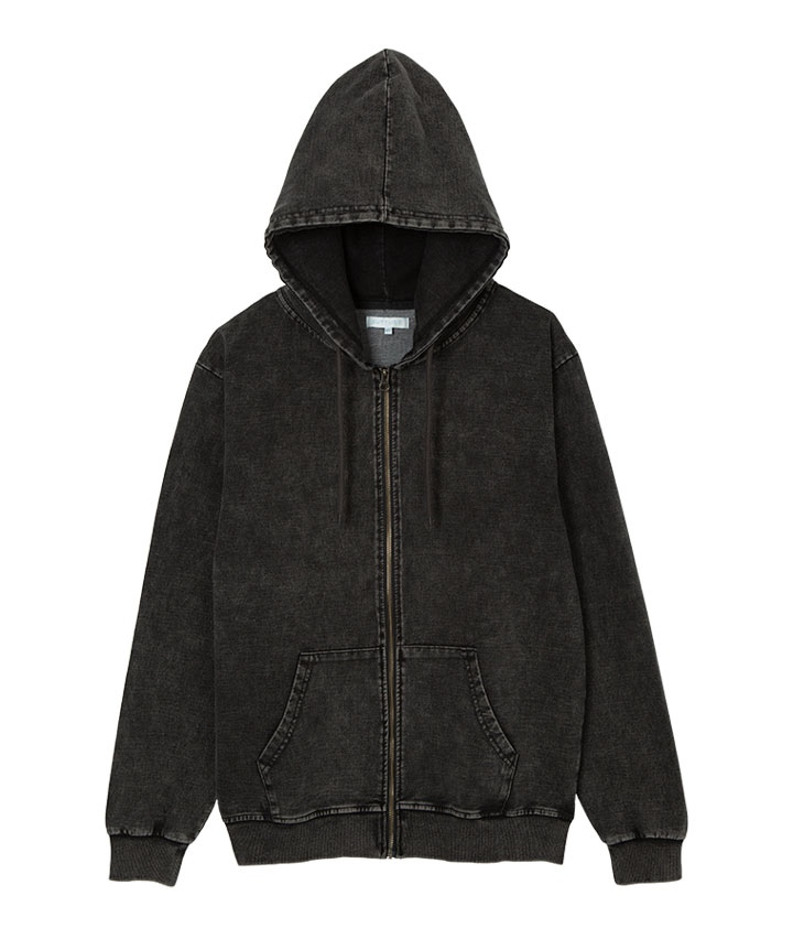 ・カットデニムの素材にケミカル加工を加えたジップパーカータイプ。