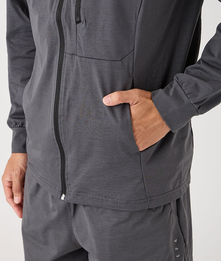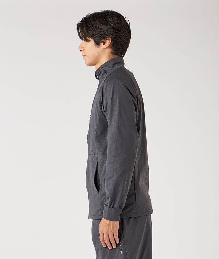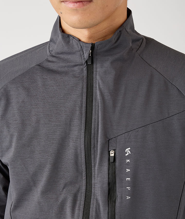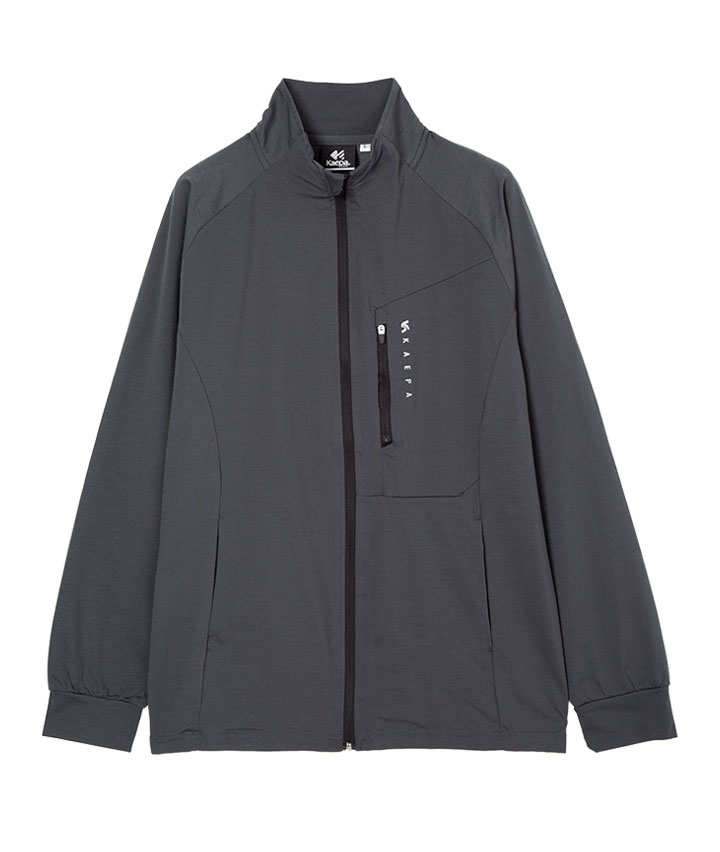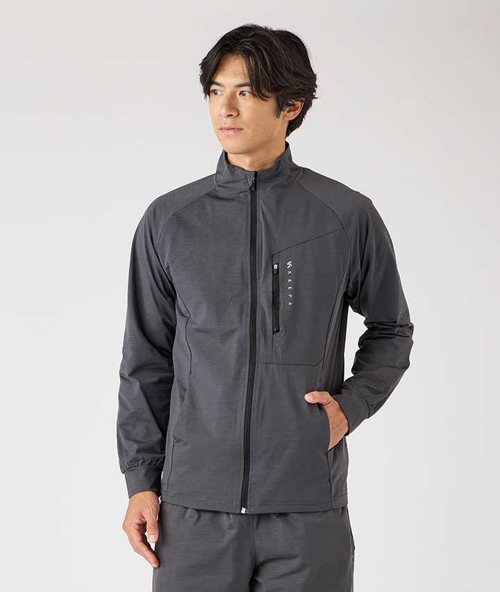 ・Kaepa×日本ウオーキング協会 コラボ商品。動きやすいストレッチ素材のトレーニングジャケットです。ファスナー付きの胸ポケットが便利。吸水速乾・UV対策。