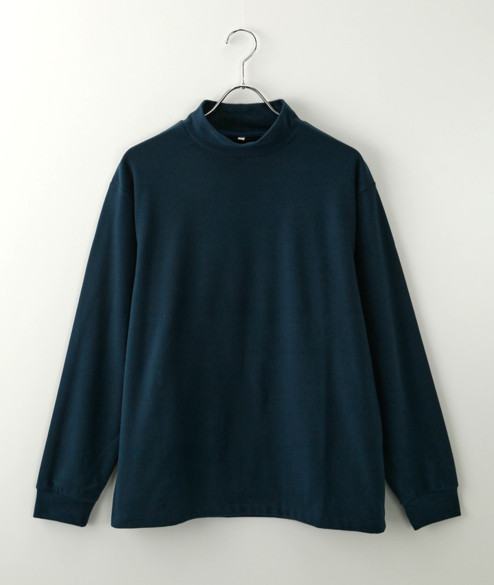 ・肌触りの良い、スムース素材のモックネックTシャツです