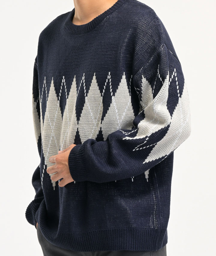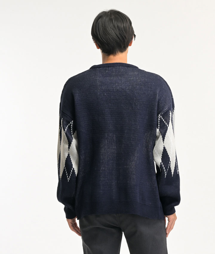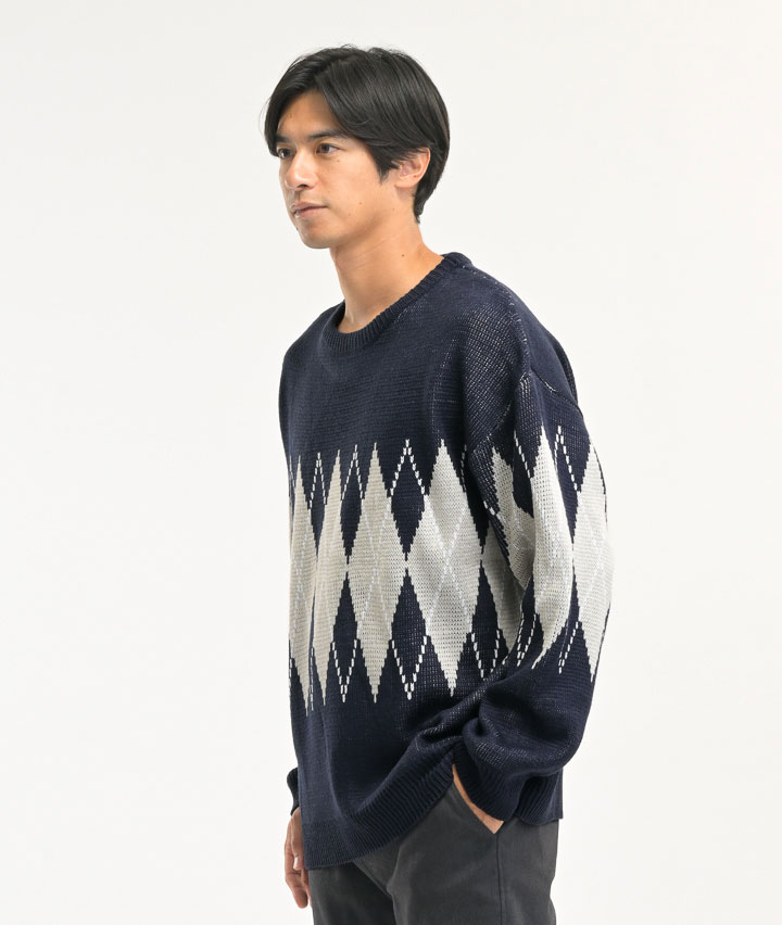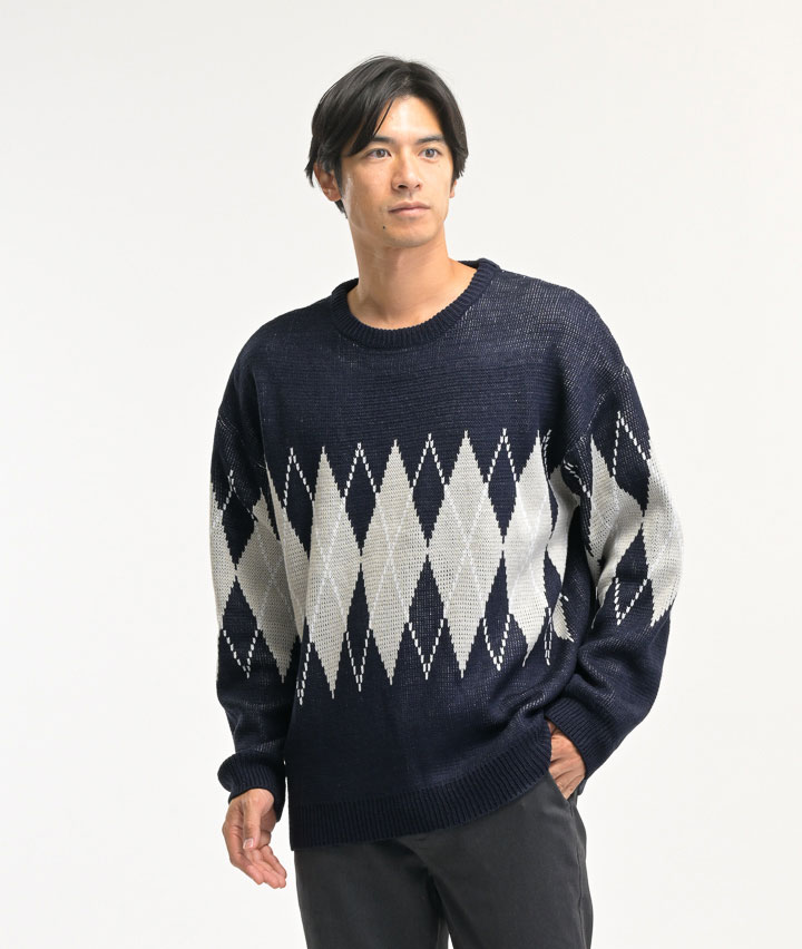・アーガイル柄のセーターです。大きめの柄が特徴。