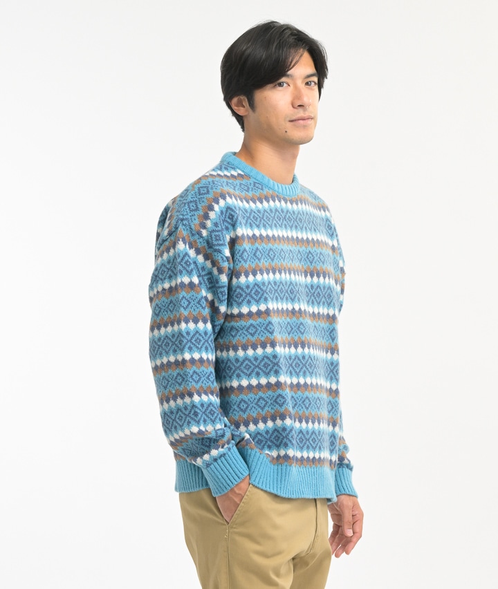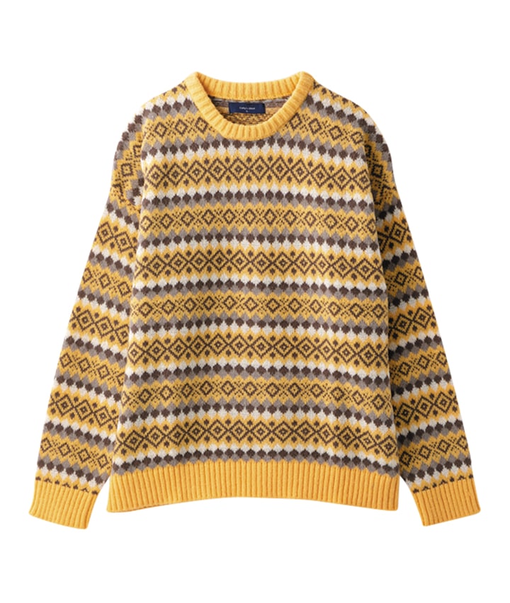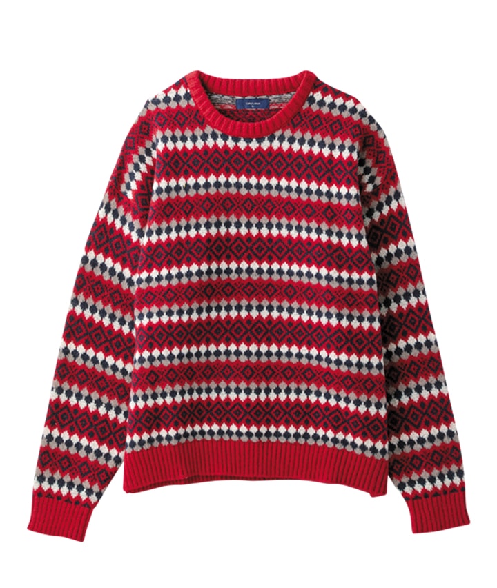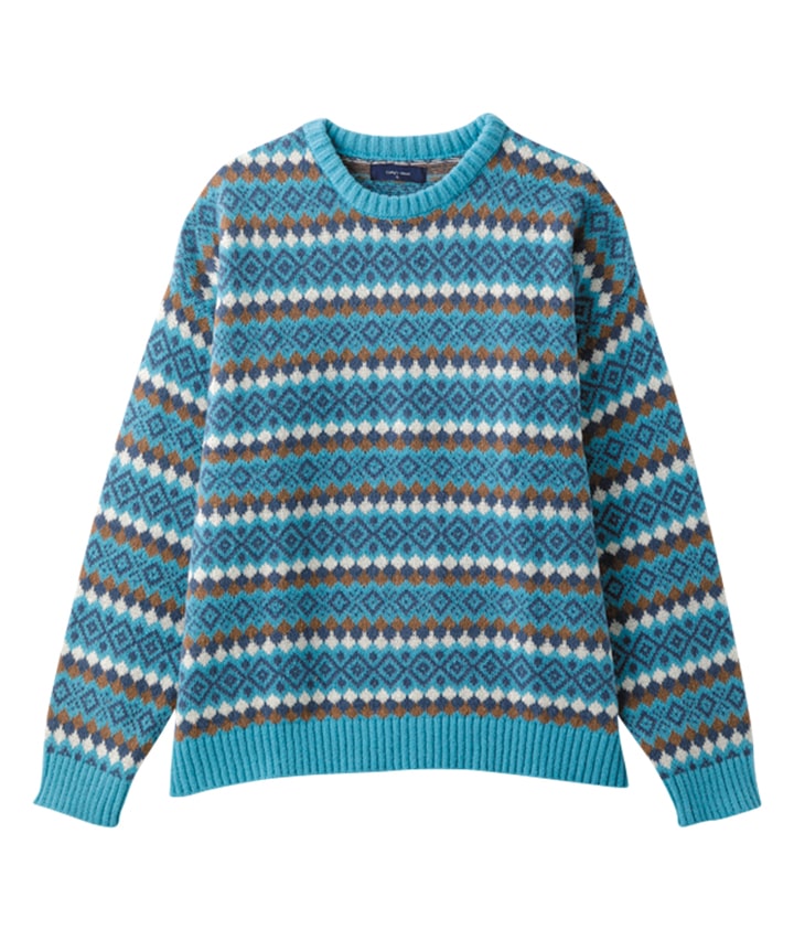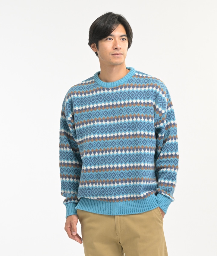 ・幾何学柄がとてもかわいい柄で、古着感覚でオシャレに着こなせるクルーセーターになります。