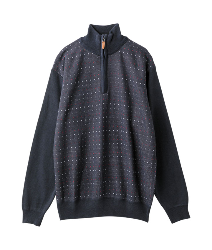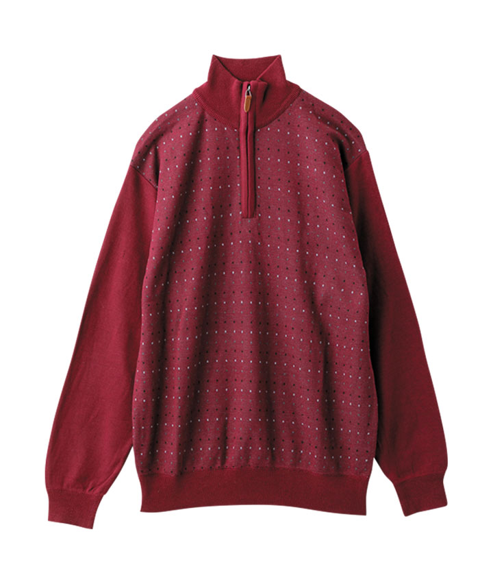 ・インナーに最適なドット柄ジャカードハーフジップニット。ファスナーを開ければ着やすいニットで髪の乱れを気にすることなく着用できます。 しゃれたニットでコーディネートを楽しんでください。