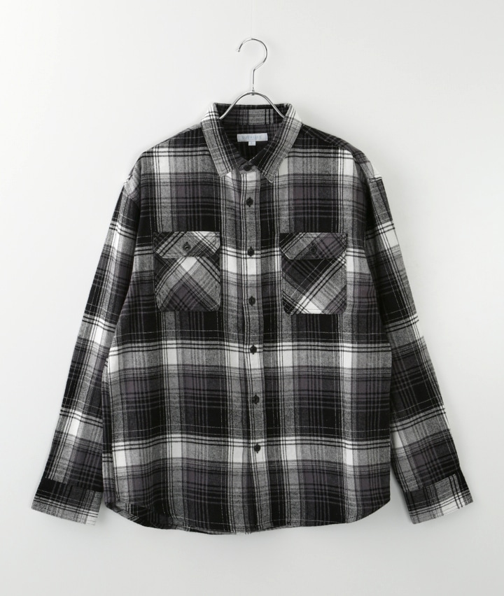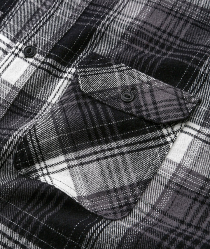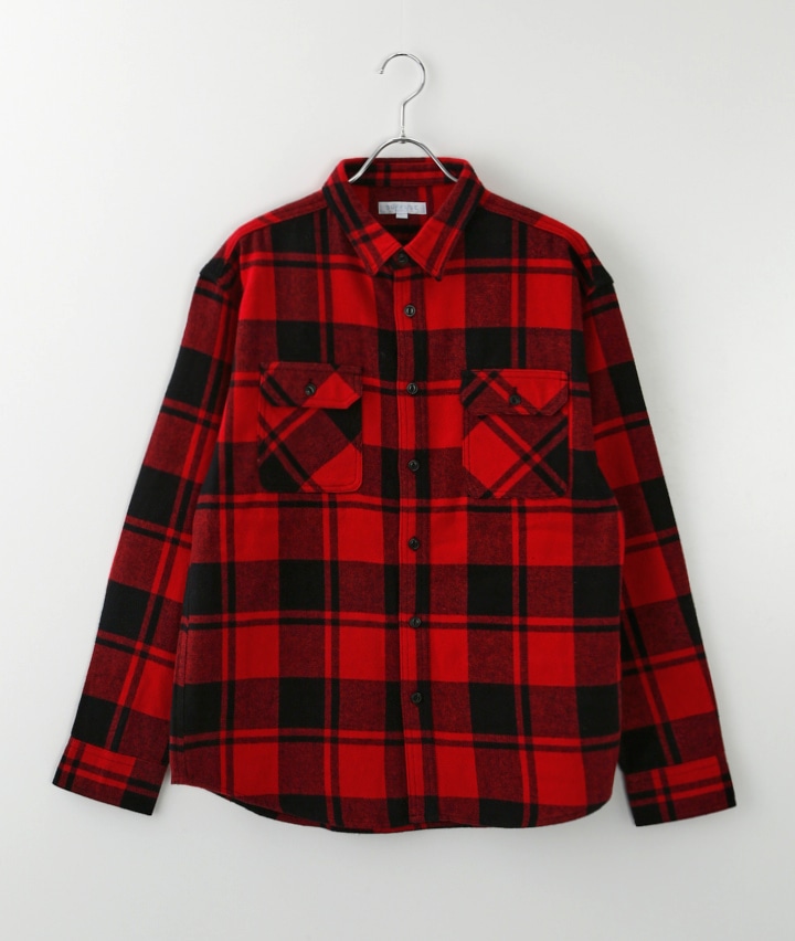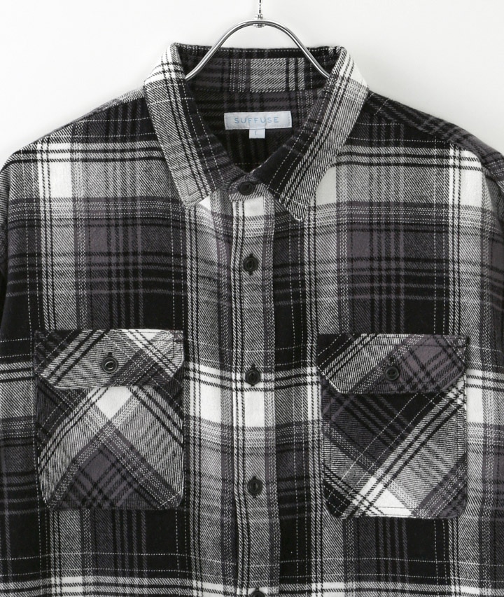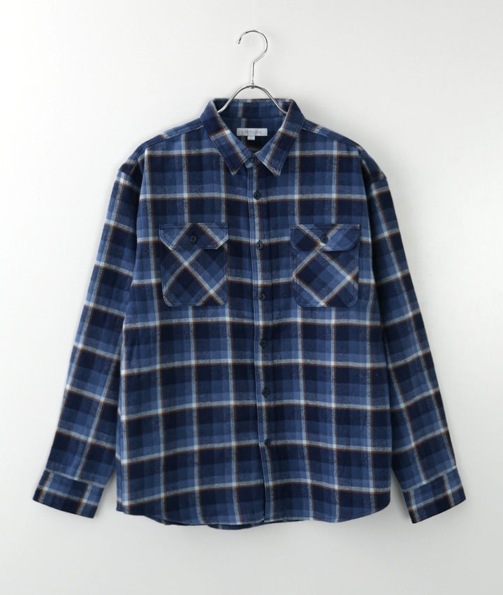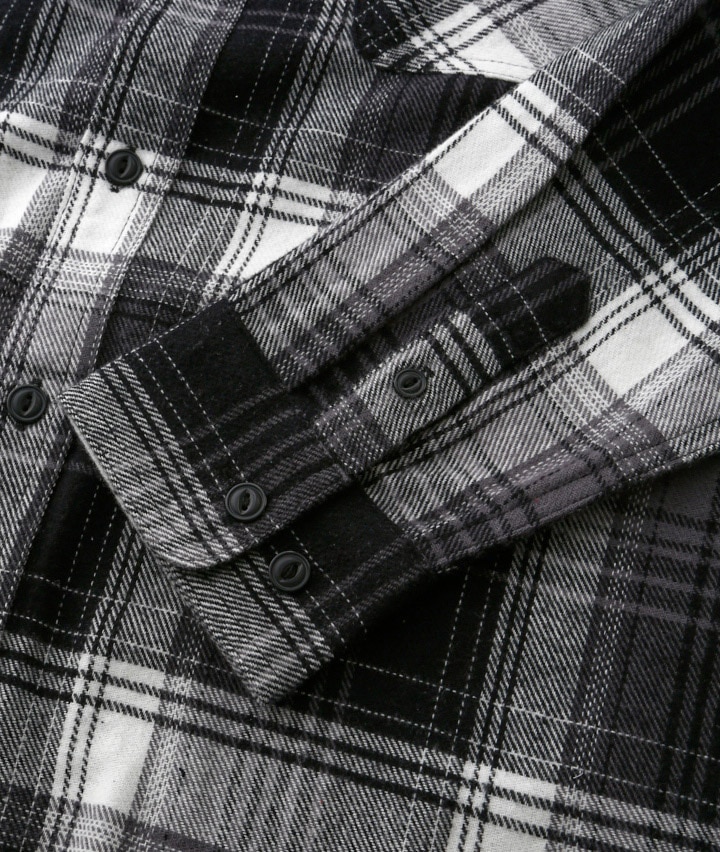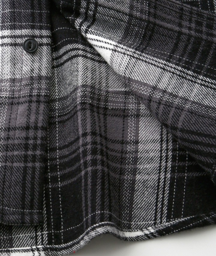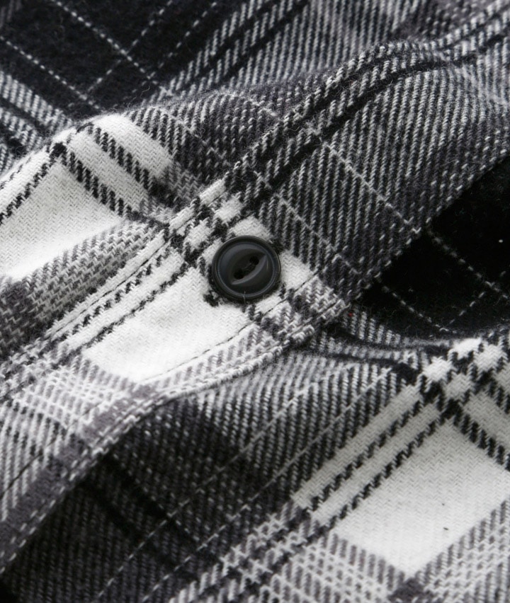 ・ネル起毛の太番手を使用した厚地のチェックシャツ。