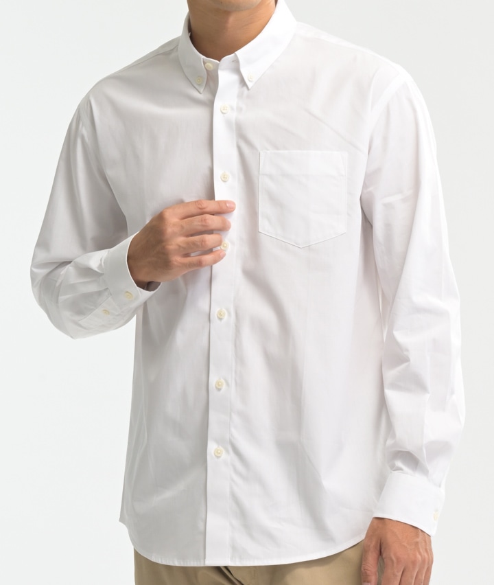 ・細番手の綿糸を使ったソフトな肌触りのシャツ。形態安定加工を施しており、お手入れ簡単。