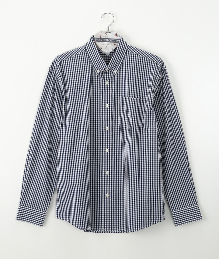形態安定ギンガムチェックシャツ