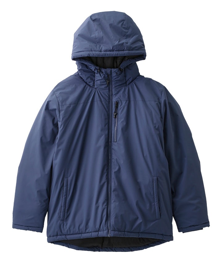 ・表地に高機能生地オールウエザーを使用。表地の裏側をポリウレタン樹脂コーティング加工することで、耐水圧10000mm・撥水・ストレッチ・防風・防花粉・UPF30(紫外線対策)を実現。胸ZIPファスナー対応で実用面でも便利な仕様です。デザインもベーシックなパーカーでコーディネイトしやすく、防寒としては最適なアイテム。中わたは、調温中綿を使用。心地よい温度にゆるやかにコントロールすることで、より快適な着心地を実現。