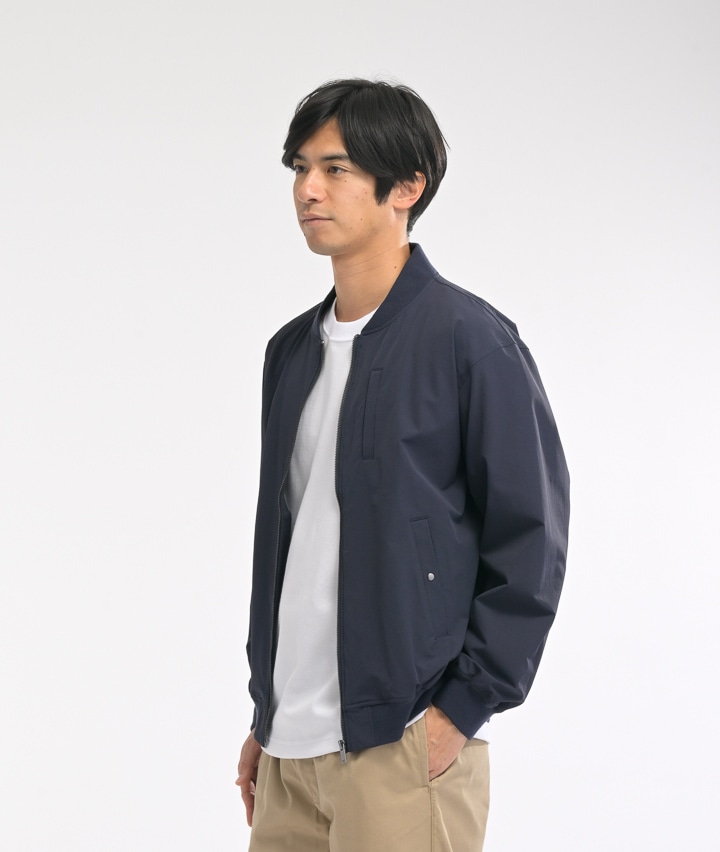 ・ナイロン素材を使用したストレッチの効いたMA-1タイプブルゾン