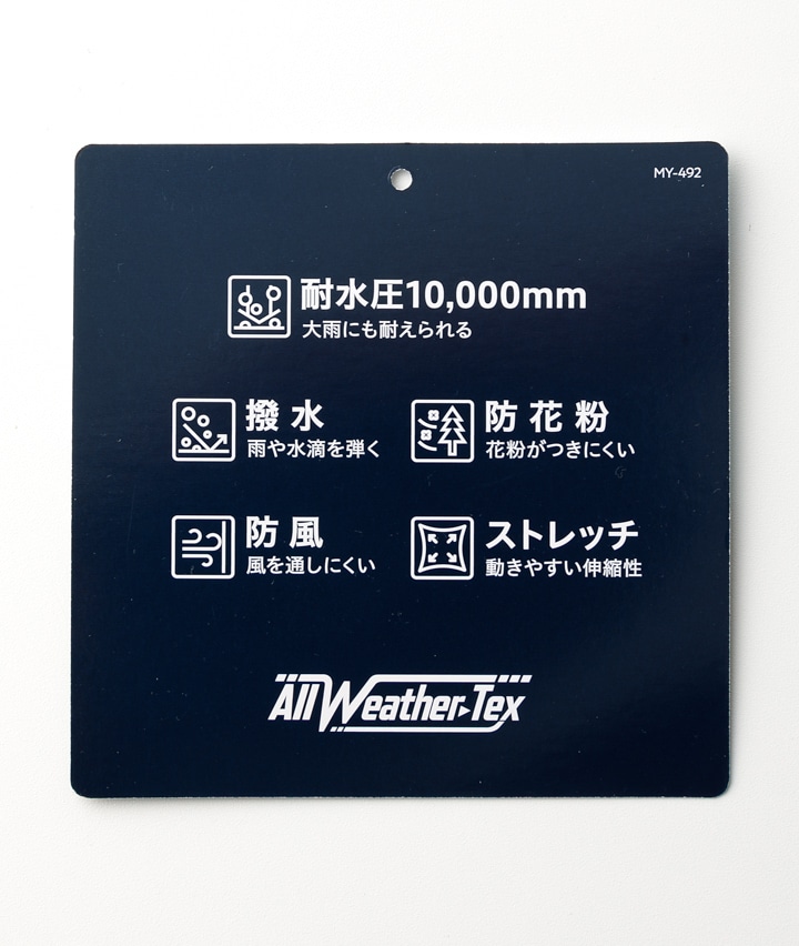 ・耐水圧10000㎜・防風・撥水・ストレッチと多機能なオールウエザー素材を使用。大雨にも耐える高機能アウターとして便利なアイテムです。ベーシックなデザインなのでどんな服装にもコーディネイトしやすい。