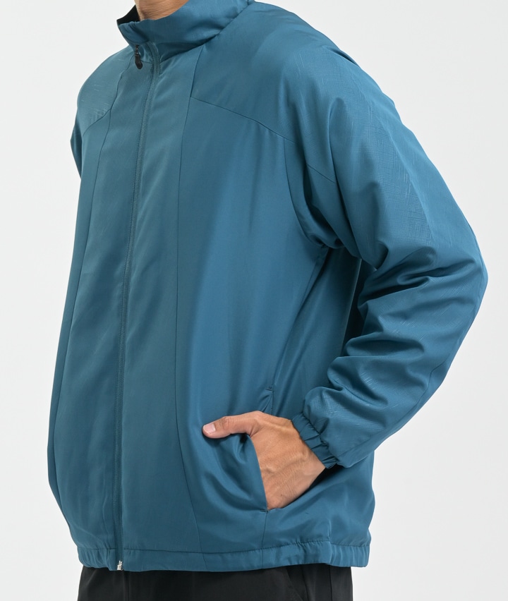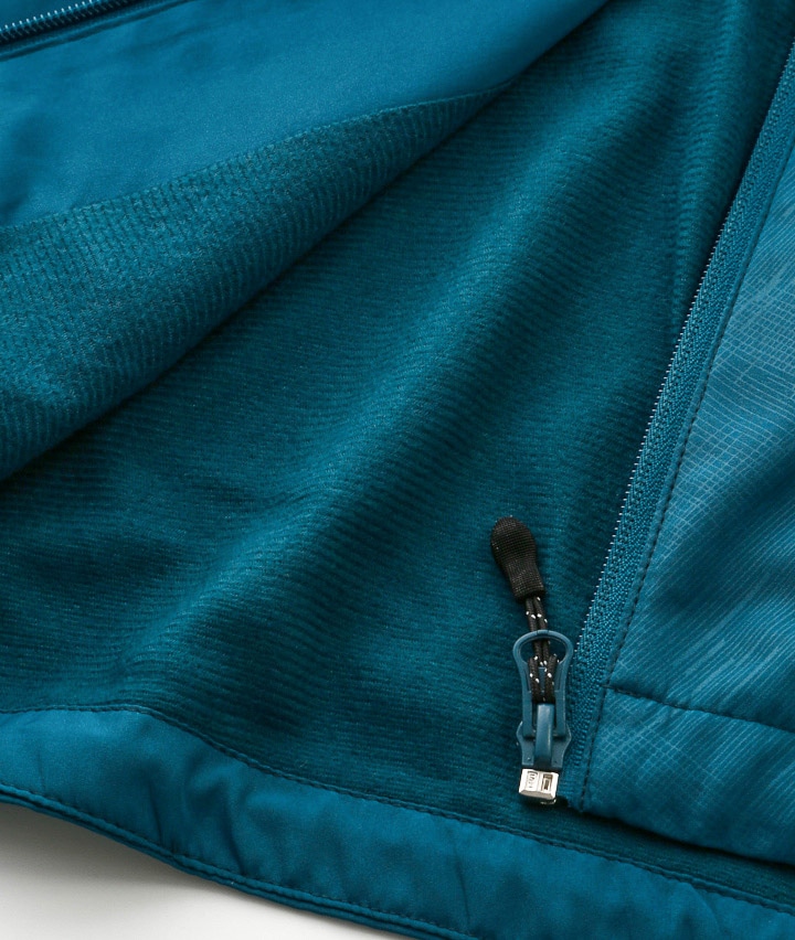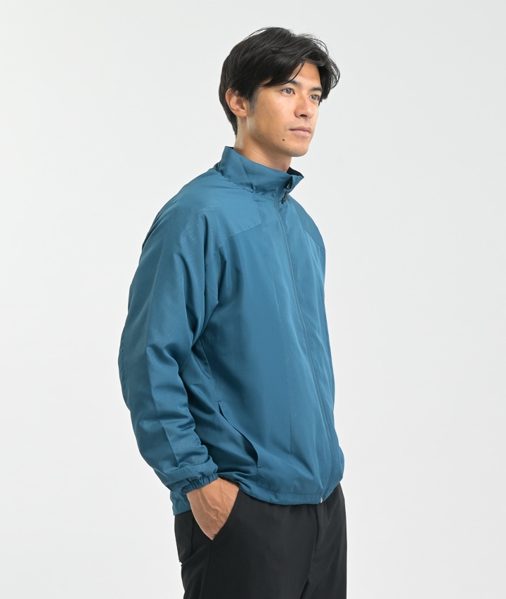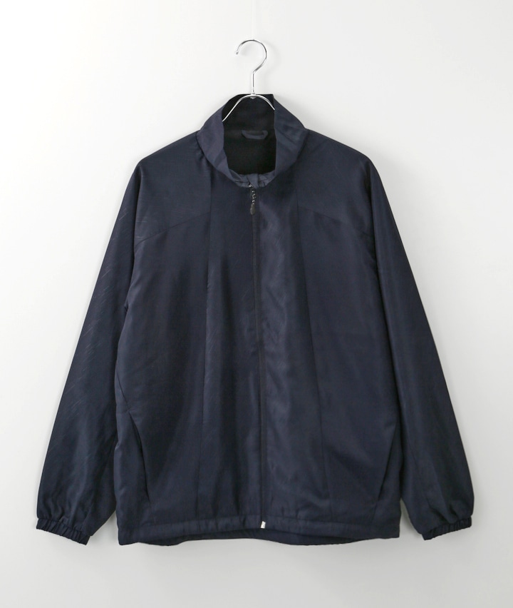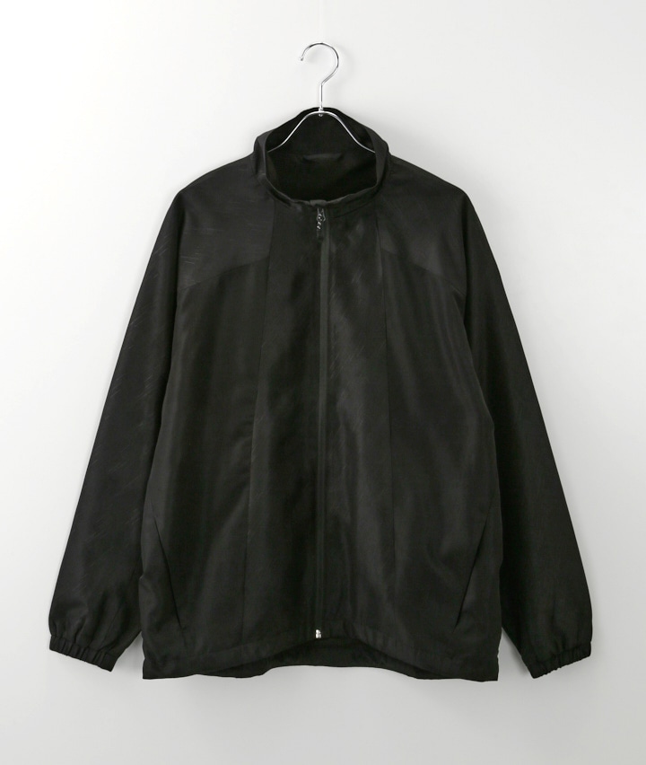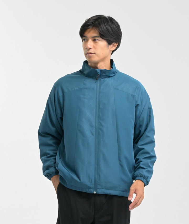 ・エンボス総柄プリントがされているスポーツジャケットは、裏トリコット仕様で暖かい。切替デザインもポイント!