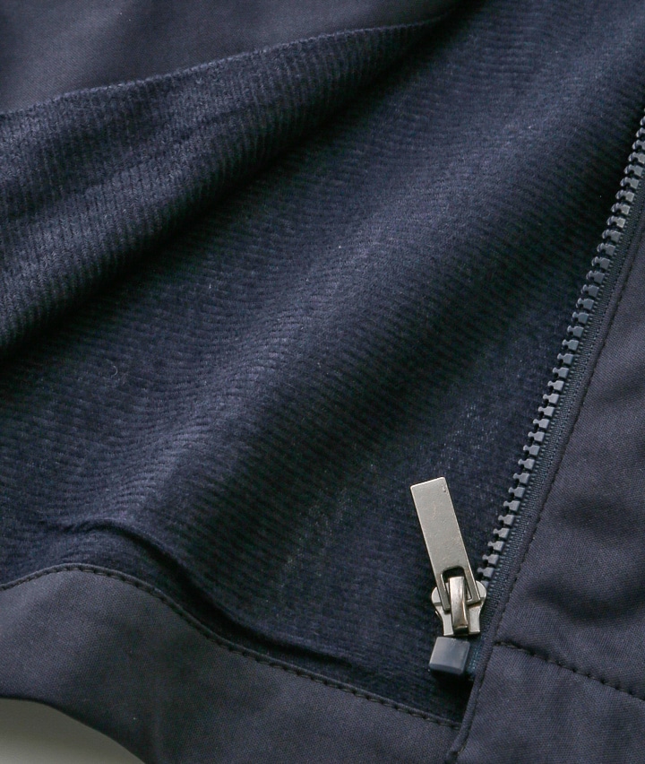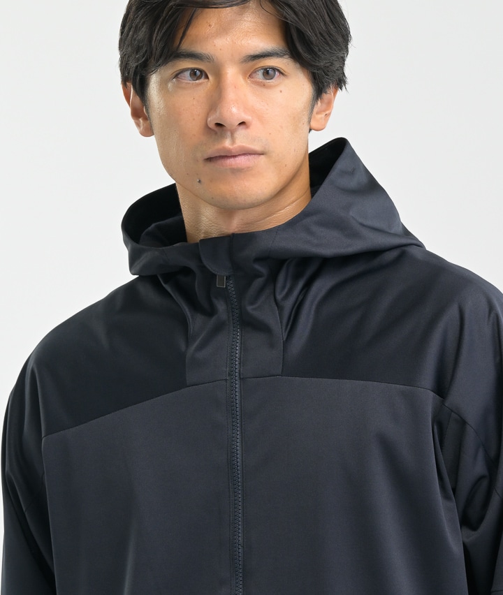 ・切替デザインが特徴的なスポーツブルゾンは、裏トリコット仕様で暖かい。撥水・防風機能付き。