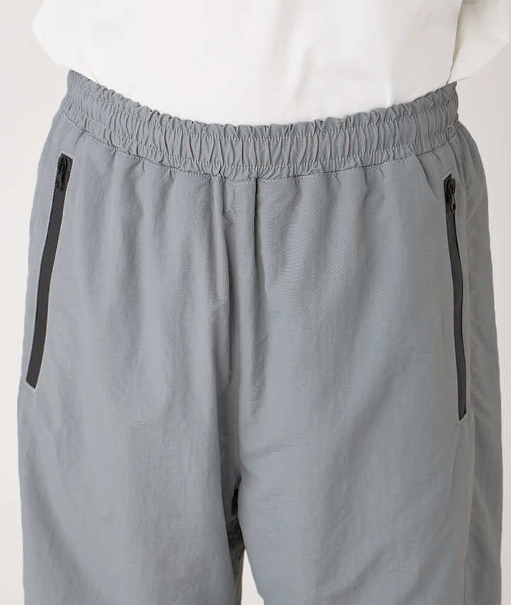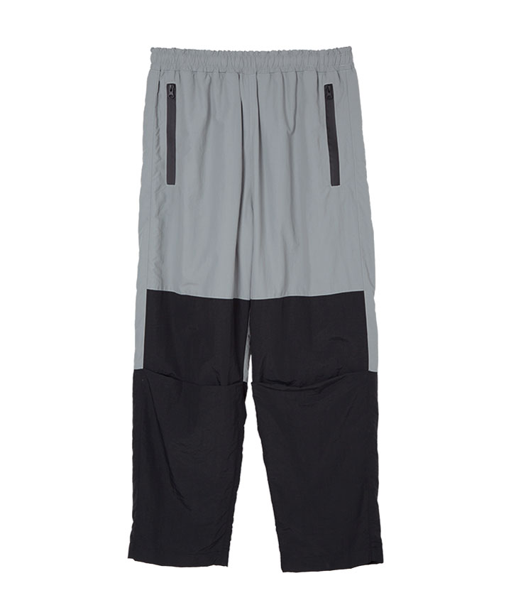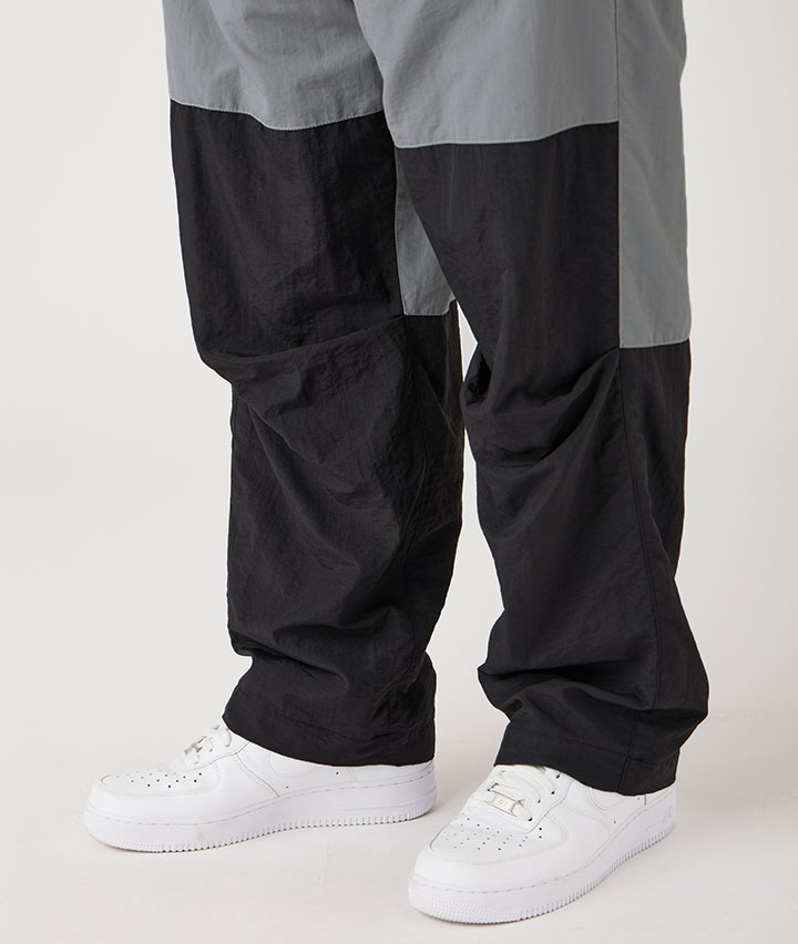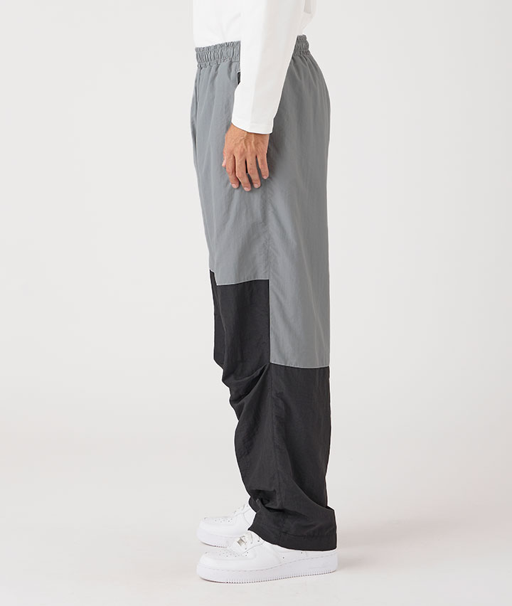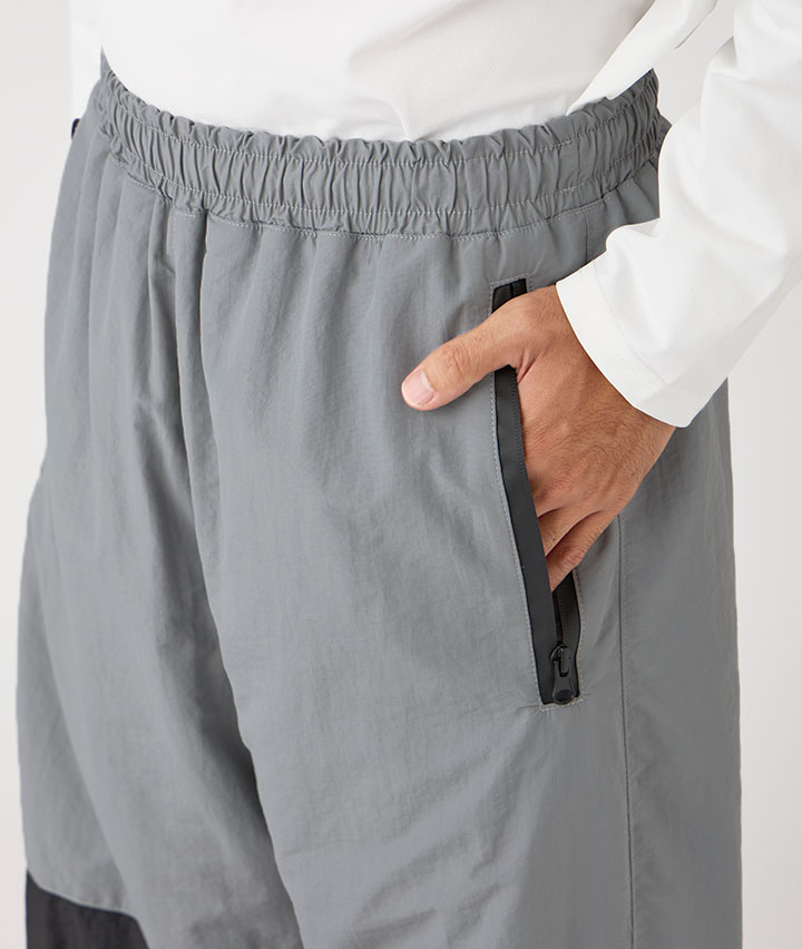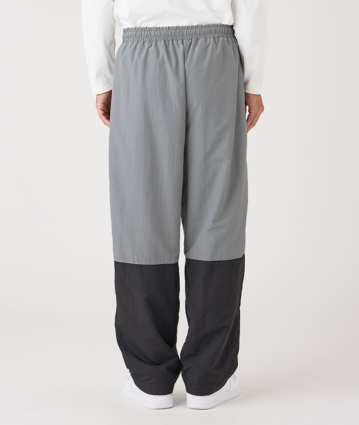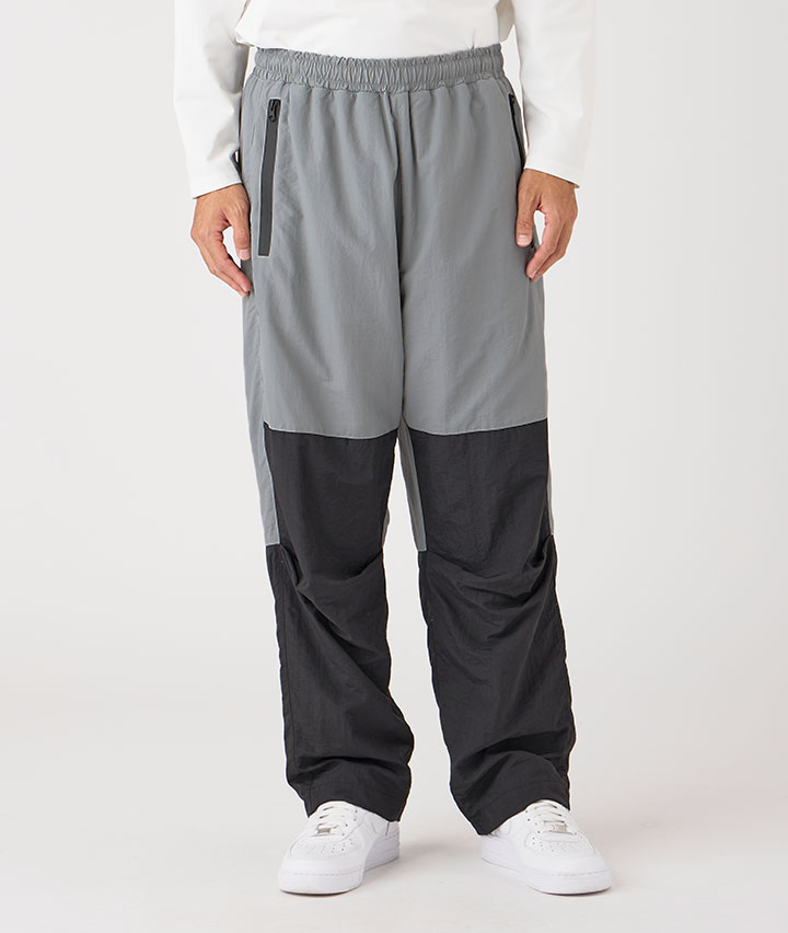 ・切替デザインが特徴のワイドパンツです。ナイロン100%。