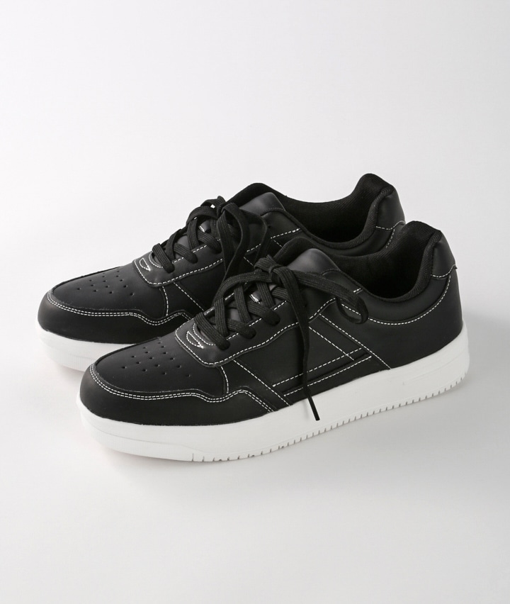 ・シンプルなデザインでどんなコーデとも相性の良いメンズ合皮スニーカー。片足重量約240グラム(※Mサイズ相当)の軽量設計で、足の疲れを軽減できます。