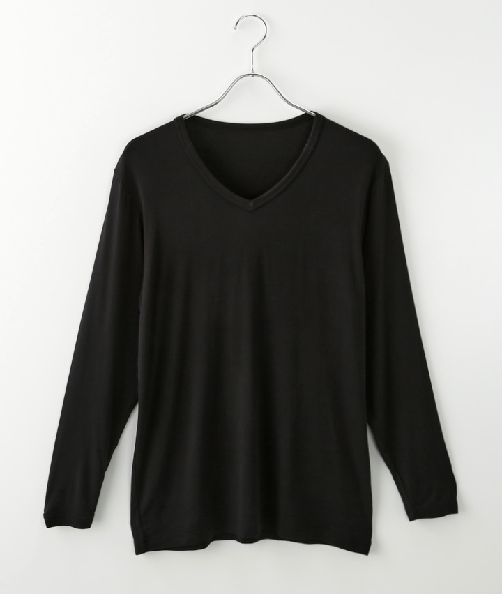 【Gingerのチカラ】【ソフトストレッチHeat】(吸湿発熱)(抗菌防臭)長袖V首シャツ