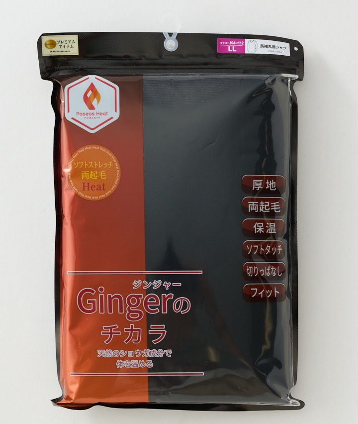 ・~天然のショウガ成分で体を温める~パシオスの【Gingerのチカラ】から更に暖かい【ソフトストレッチ両起毛Heat】が新登場しました。表面・裏面が起毛素材で保温に優れ、切りっぱなしにより縫い目が少ない為、着用時にゴロつきにくくソフトタッチでやわらかな肌ざわりです。
