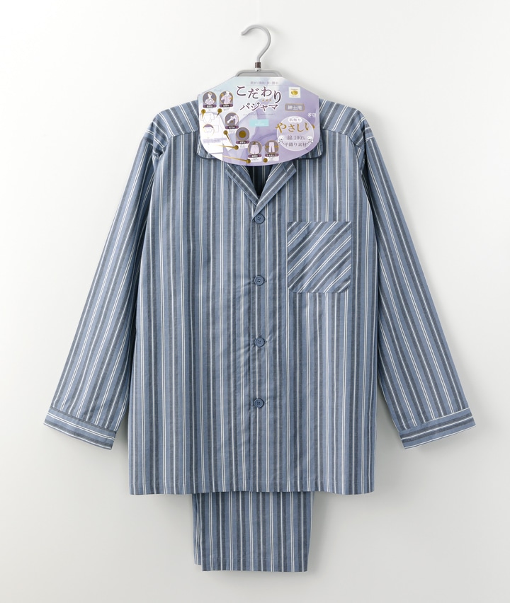 【こだわりパジャマ】(綿100%)先染マルチストライプ