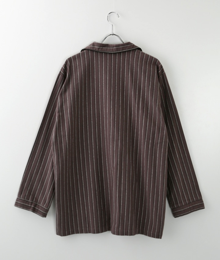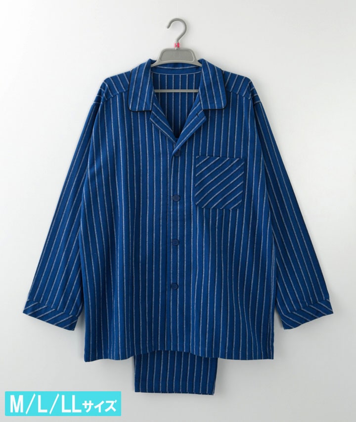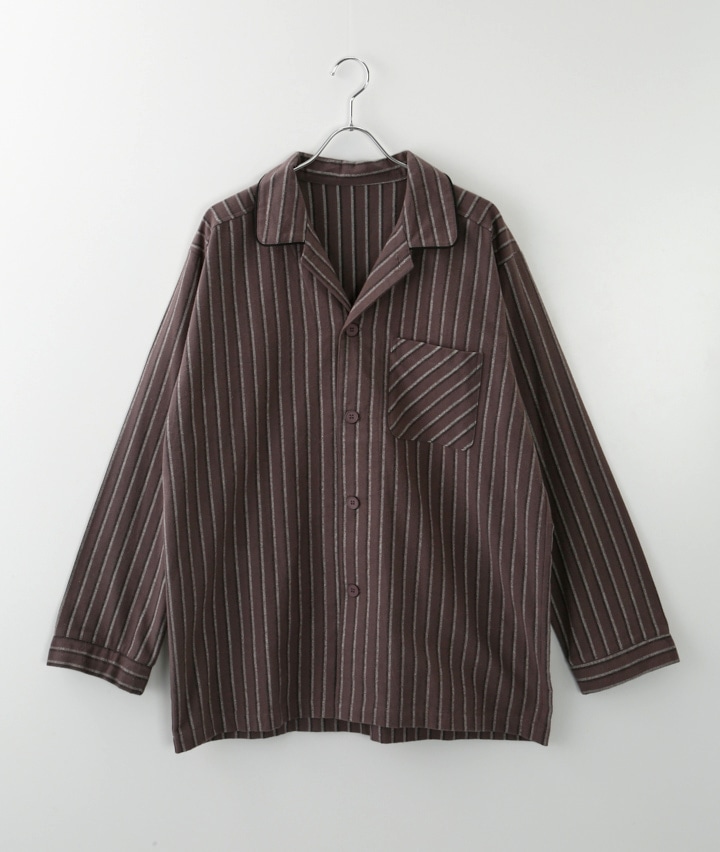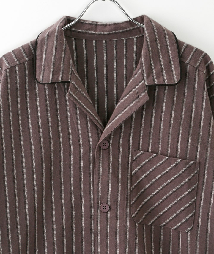 (こだわりパジャマ)(綿100%)コントラストストライプ起毛シャツパジャマ