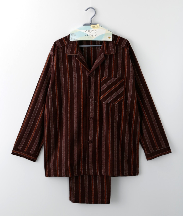 【こだわりパジャマ】(綿100%)ラグジュアリストライプ起毛シャツパジャマ