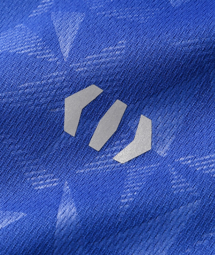 ・ポリエステルメッシュ素材で軽くて涼やか。胸と背中にリフレクタープリントを施しており、車のライトなどに反射する設計。