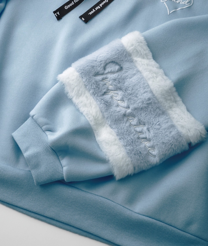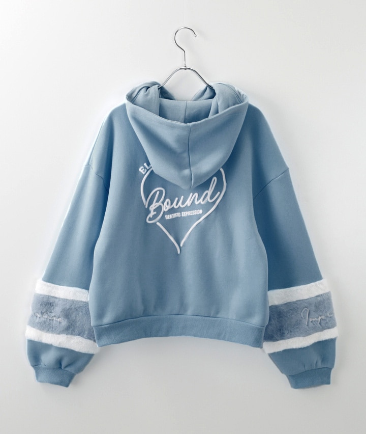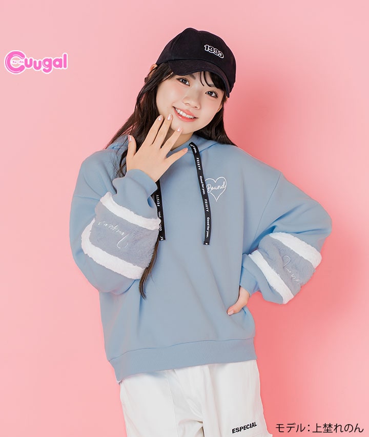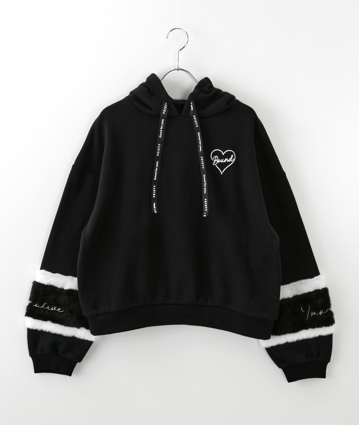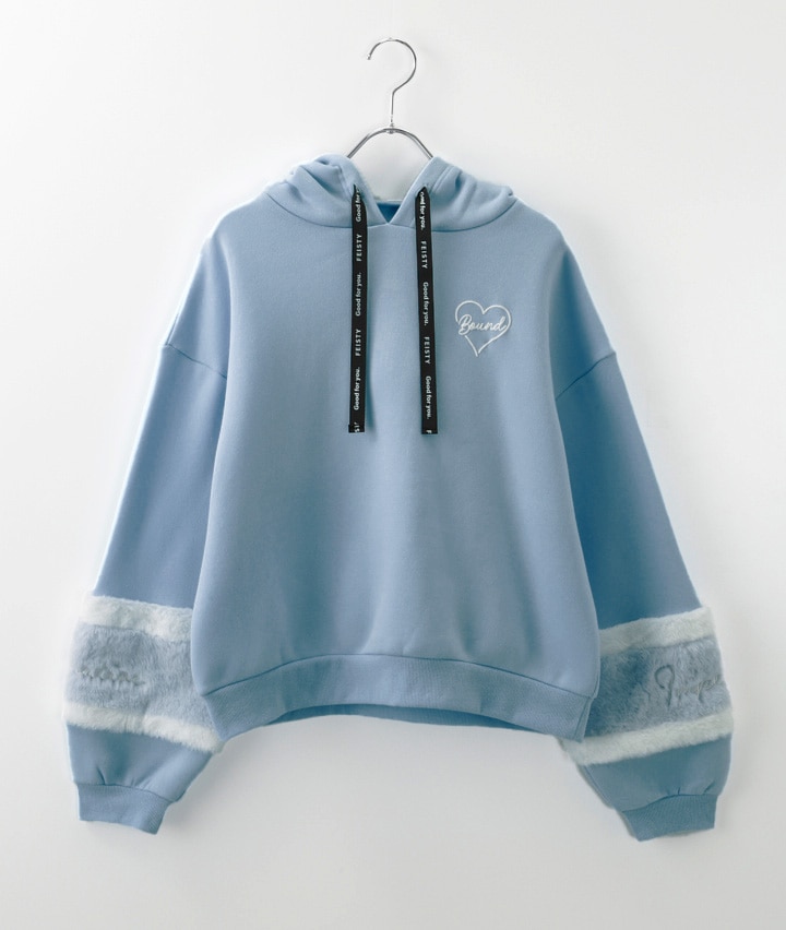 ・ファー切替の袖がかわいいプルパーカーです。裏起毛素材で暖かいです。