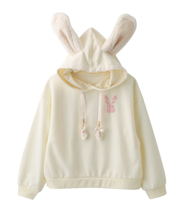 ・うさ耳付きフードがかわいいプルパーカーです。スピンドルに付いているうさぎチャームもかわいい!