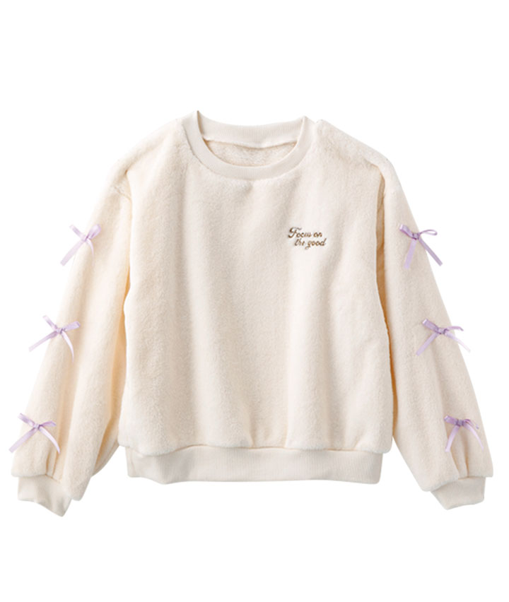 ・袖のリボンデザインがかわいいプルオーバーです。ボア素材で寒い冬でも暖かく着用できます。
