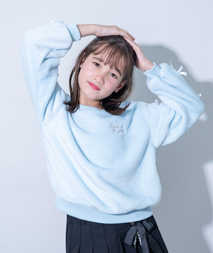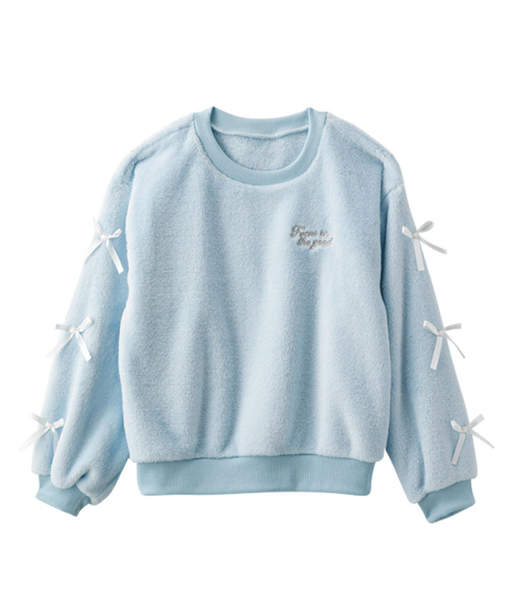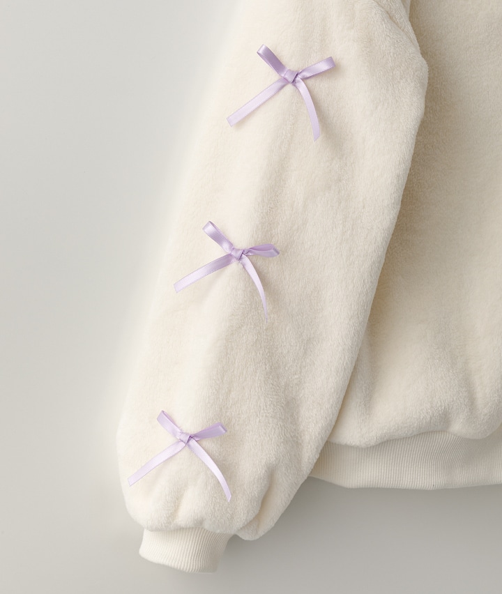・袖のリボンデザインがかわいいプルオーバーです。ボア素材で寒い冬でも暖かく着用できます。