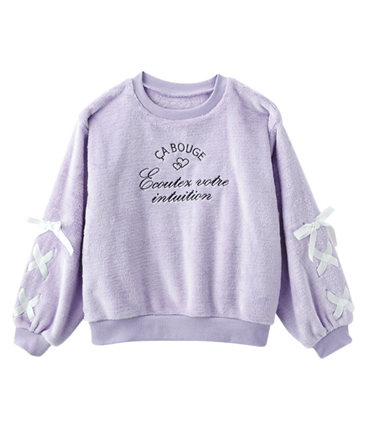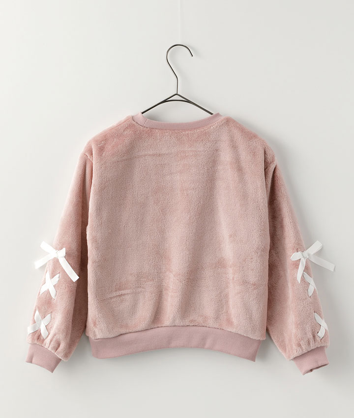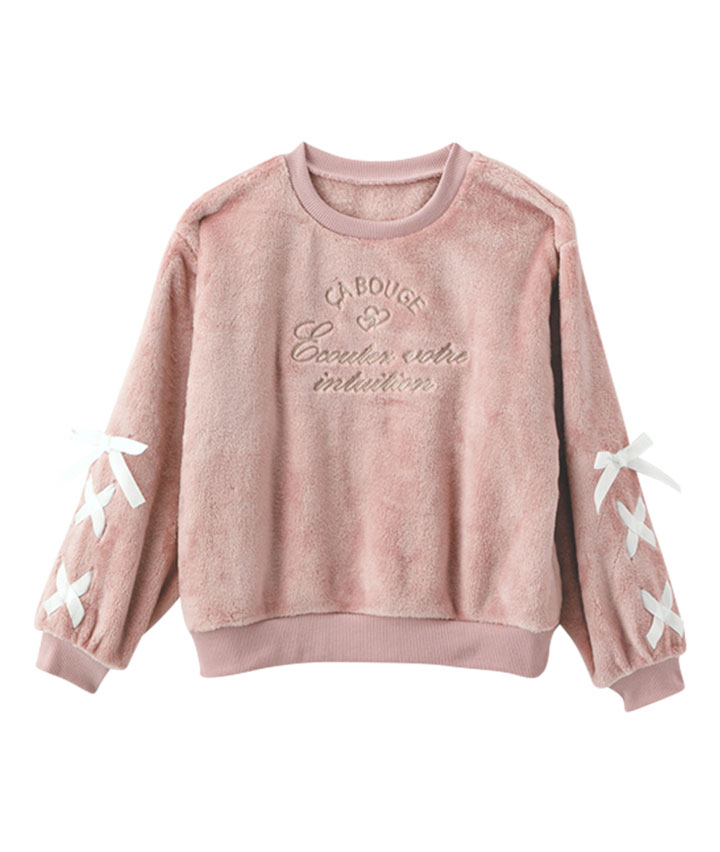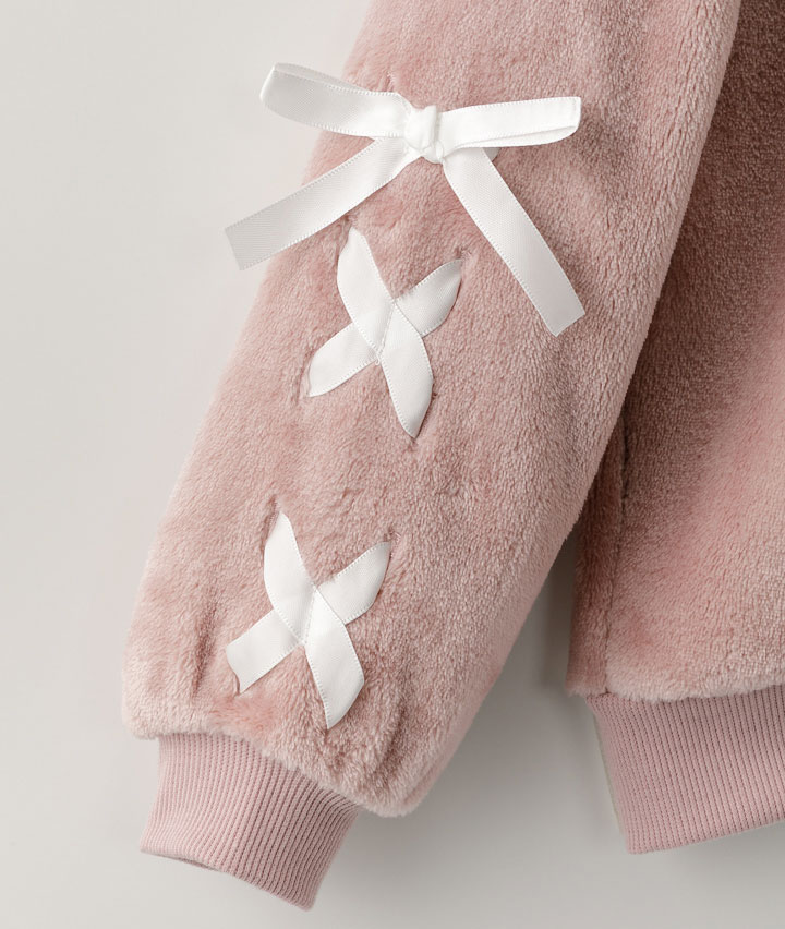 ・袖のレースアップデザインがかわいいプルオーバーです。ボア素材で寒い冬でも暖かく着用できます。