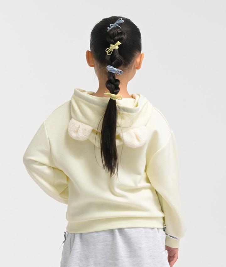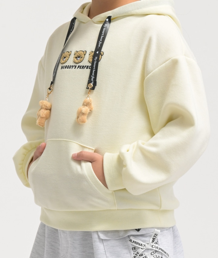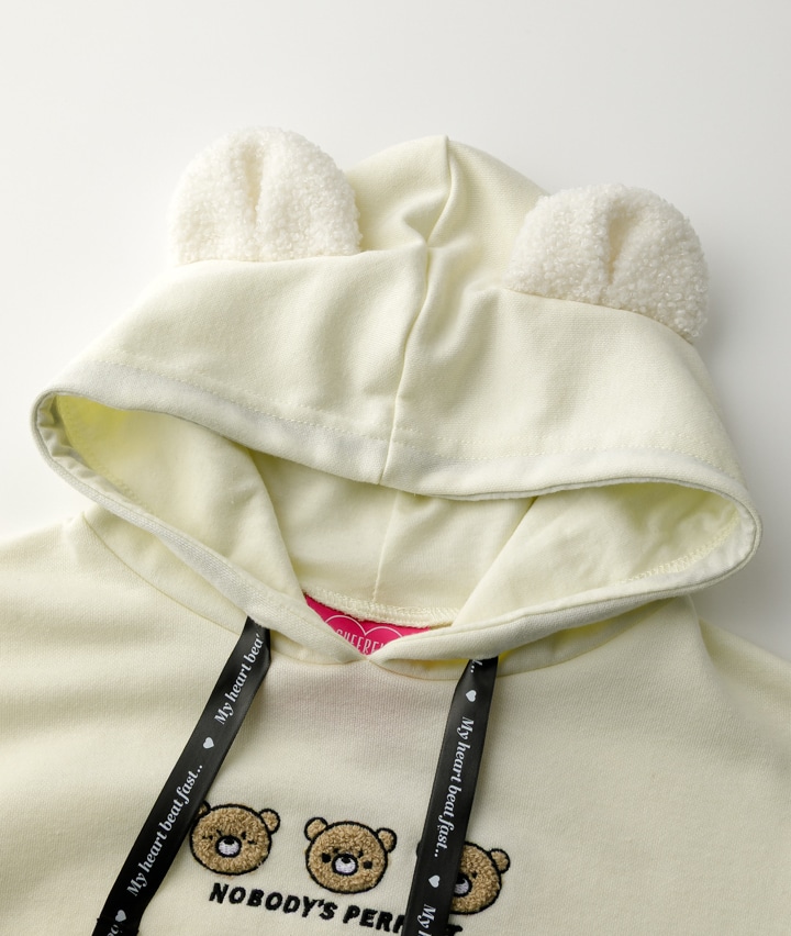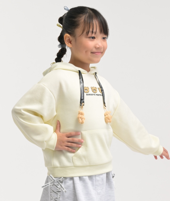 ・くまみみ付きフードがかわいいプルパーカーです。スピンドルにはくまのチャーム付き!